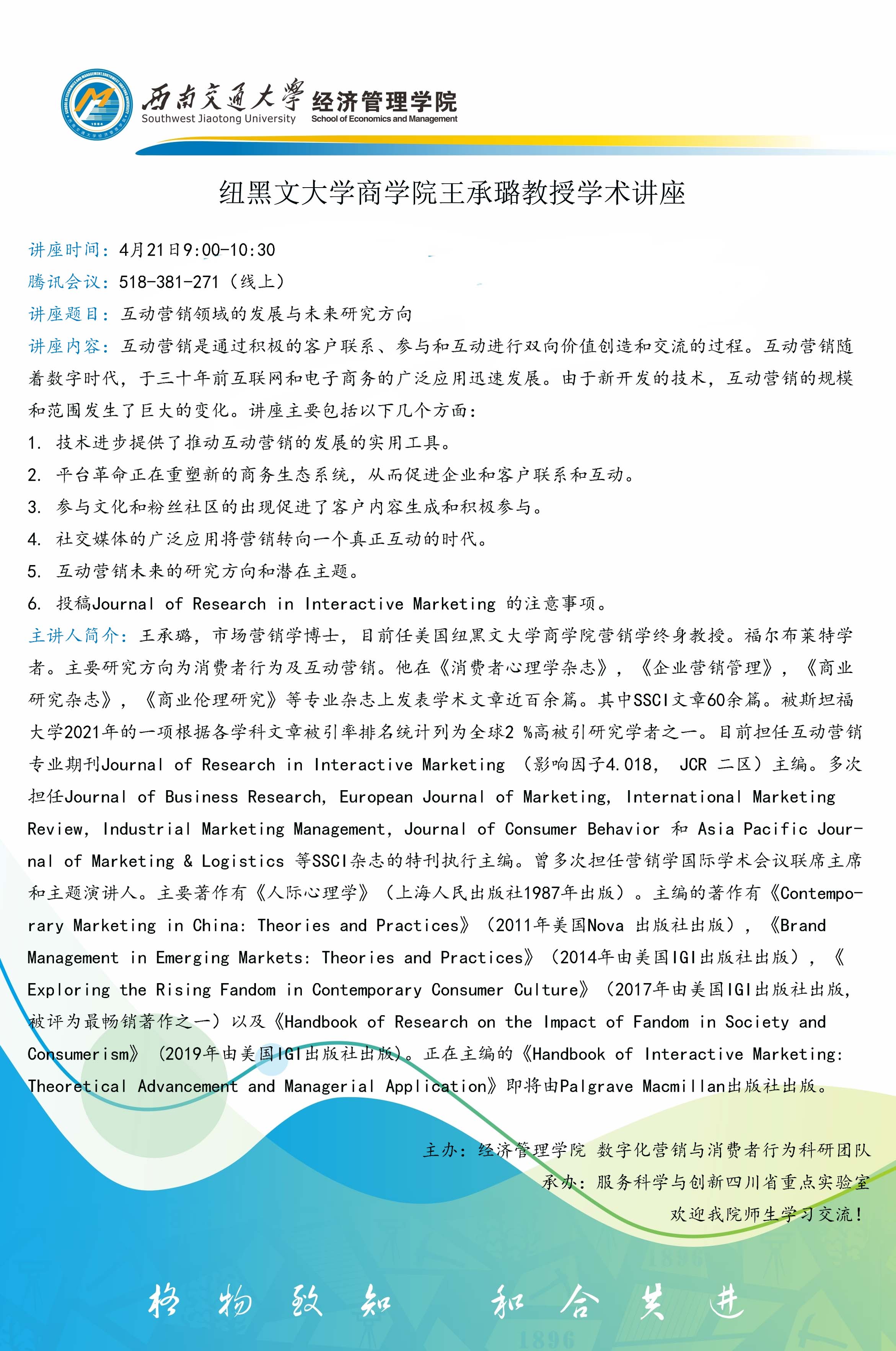 纽黑文大学商易游体育 王承璐教授学术讲座
