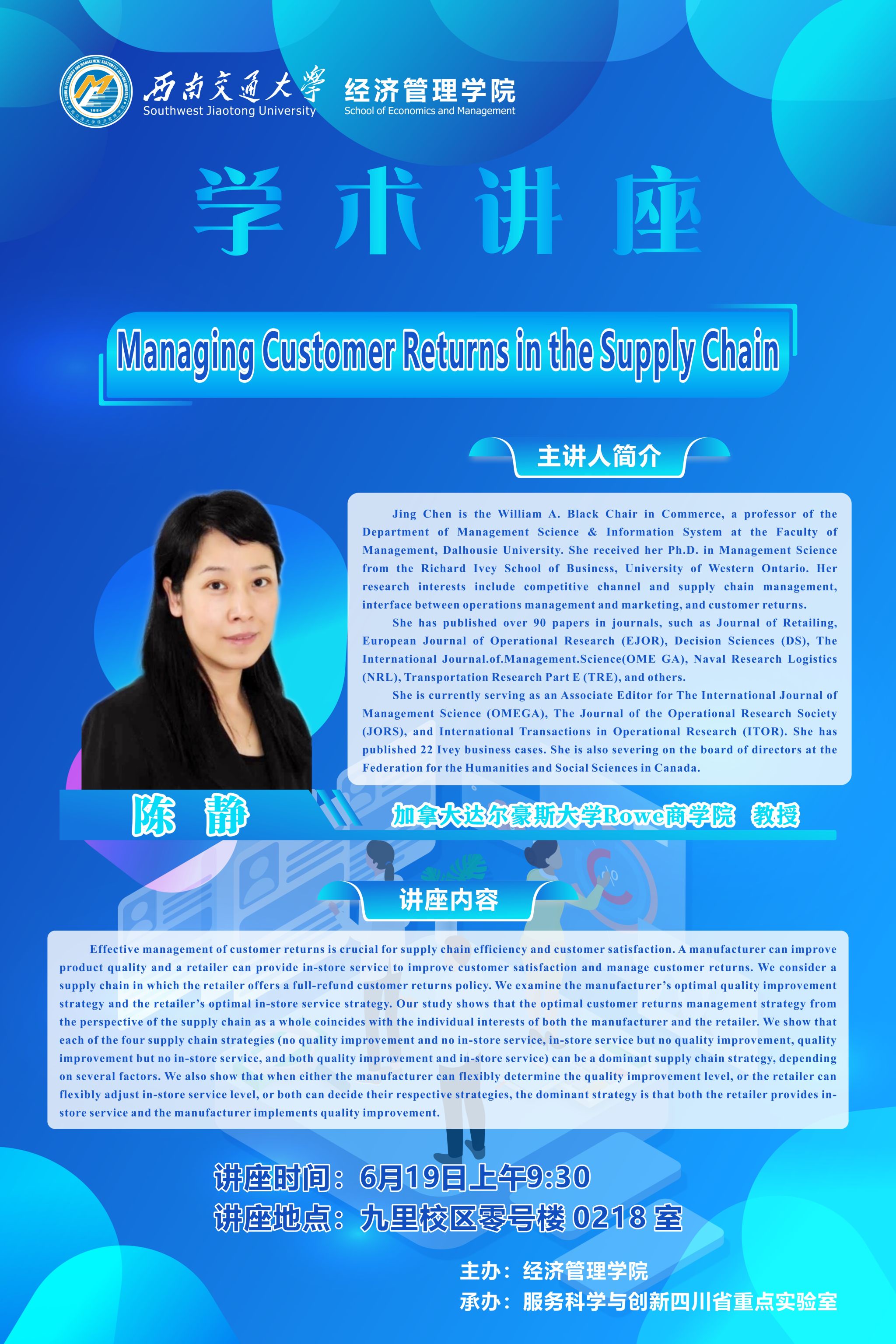 加拿大达尔豪斯大学Rowe商易游体育 陈静教授学术讲座