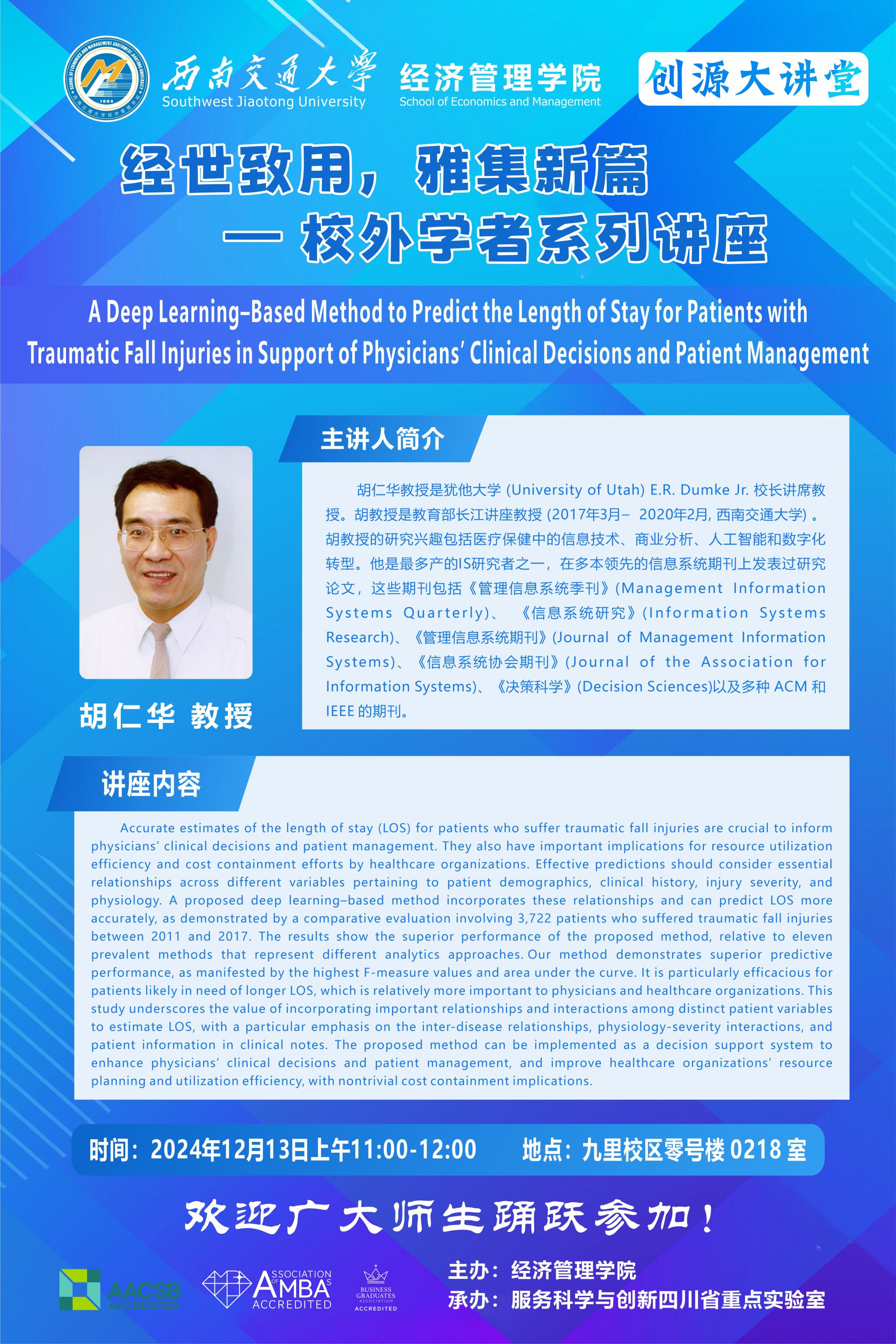 犹他大学胡仁华教授学术讲座