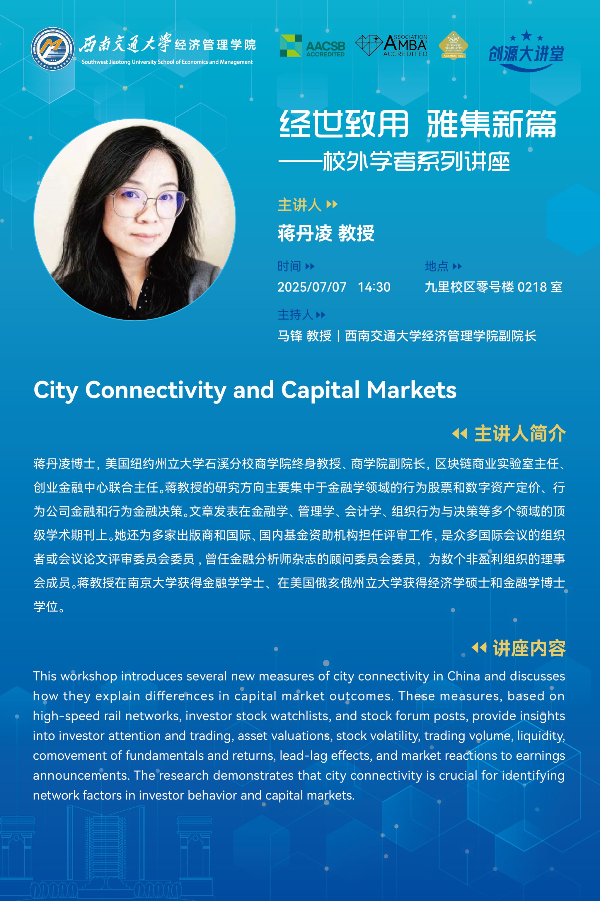 美国纽约州立大学石溪分校商易游体育 蒋丹凌教授学术讲座