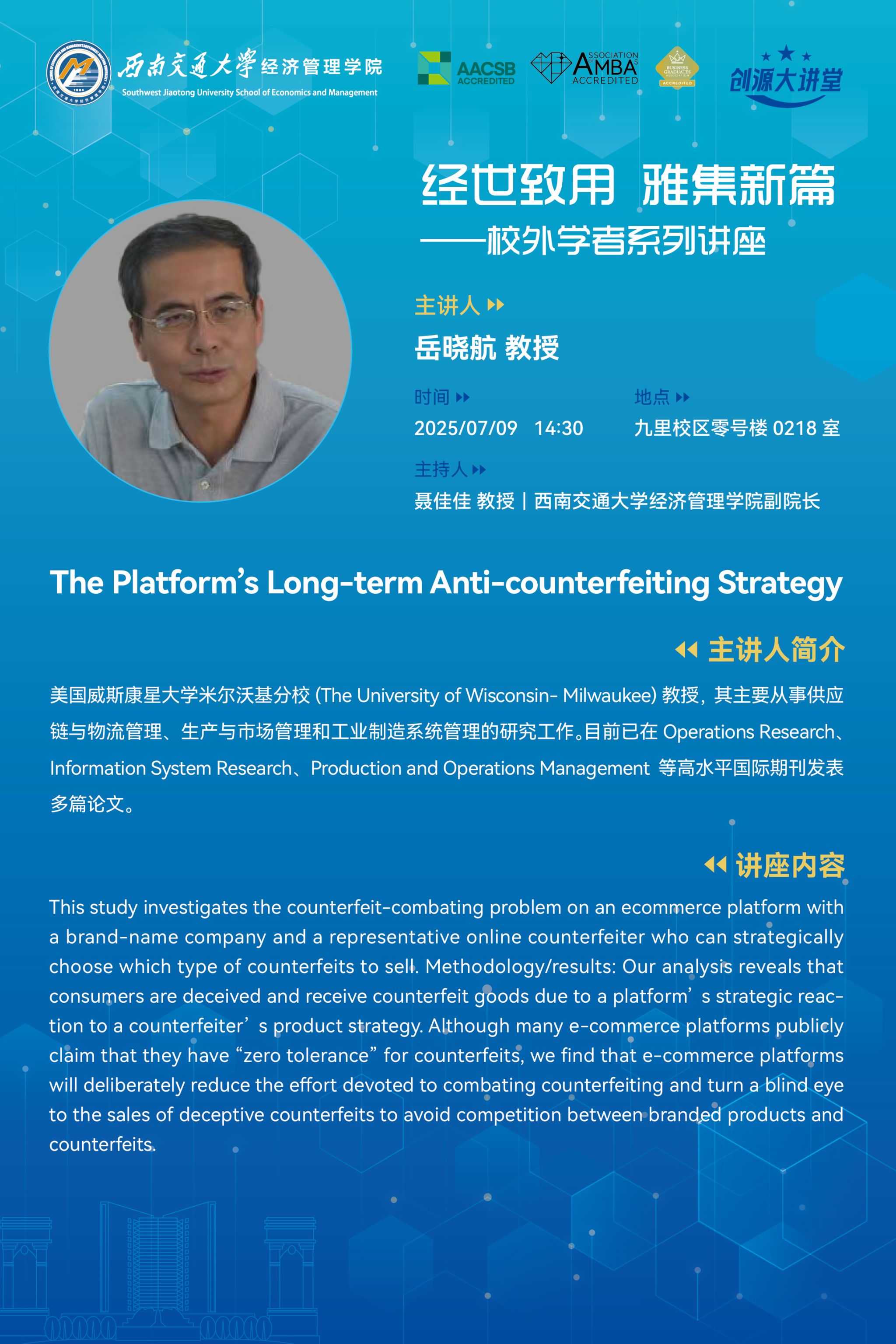 美国威斯康星大学米尔沃基分校岳晓航教授学术讲座