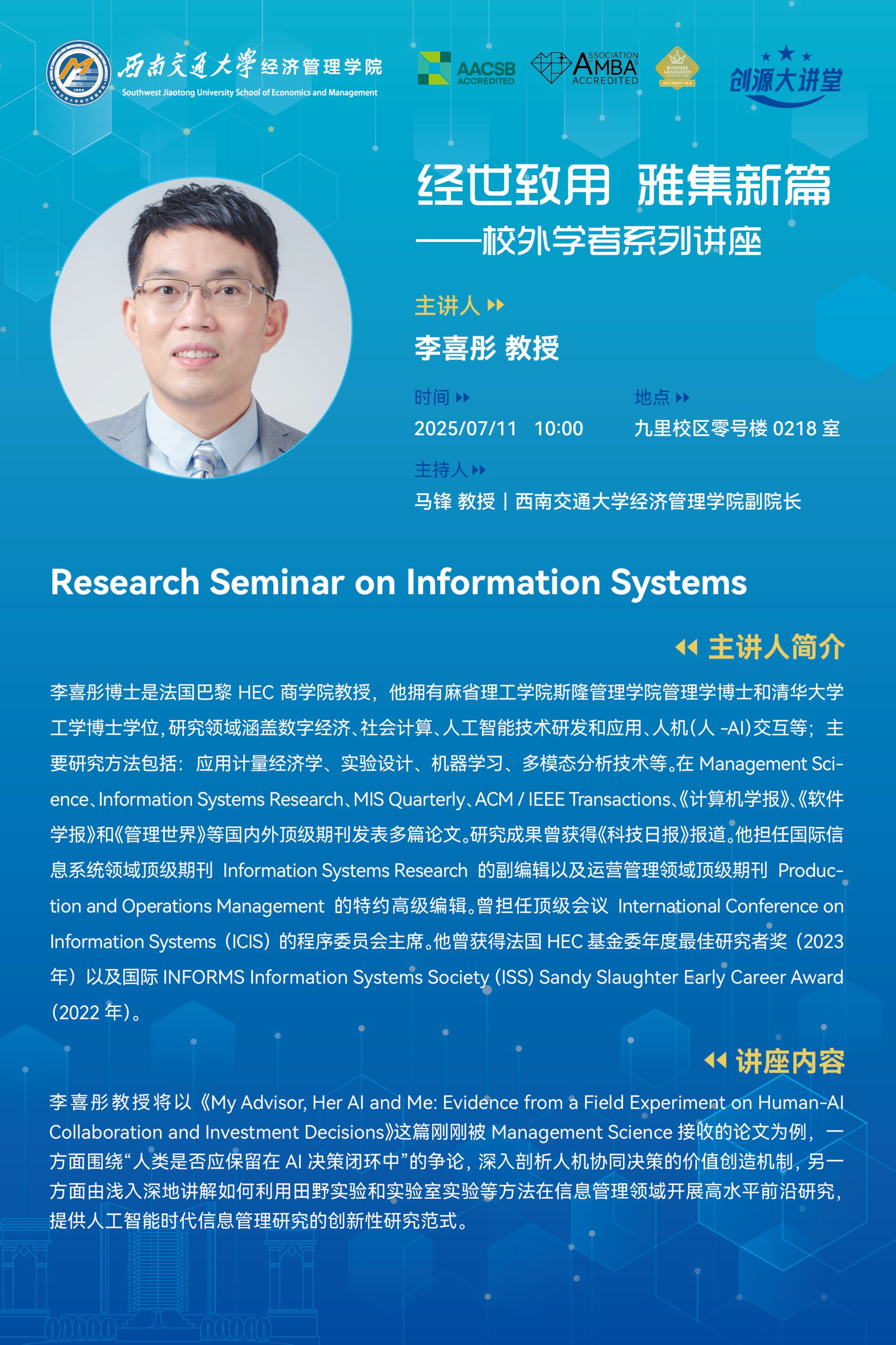 法国巴黎HEC商易游体育 李喜彤教授学术讲座