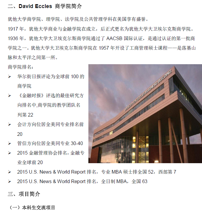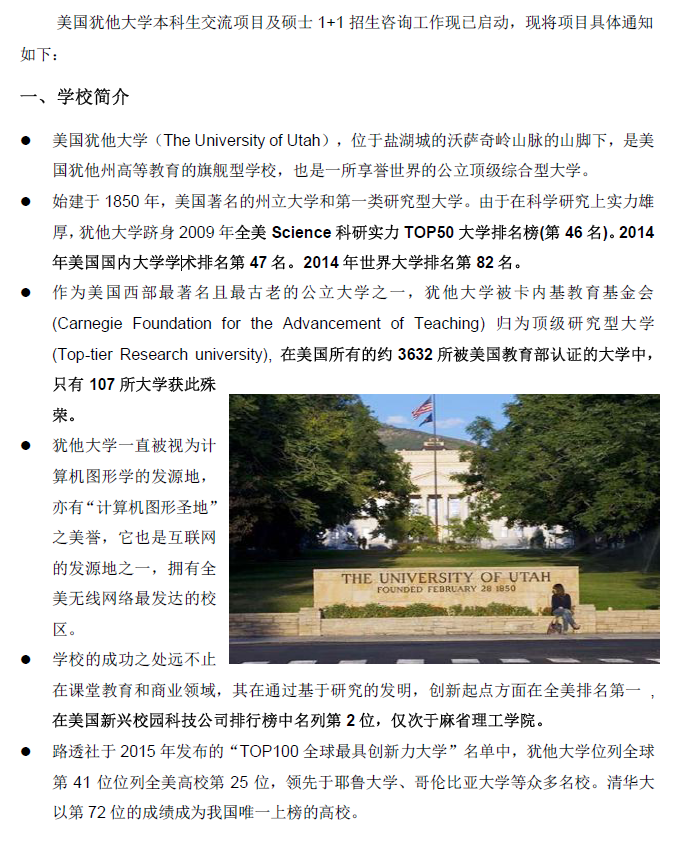 美国犹他大学本科生交流项目及硕士