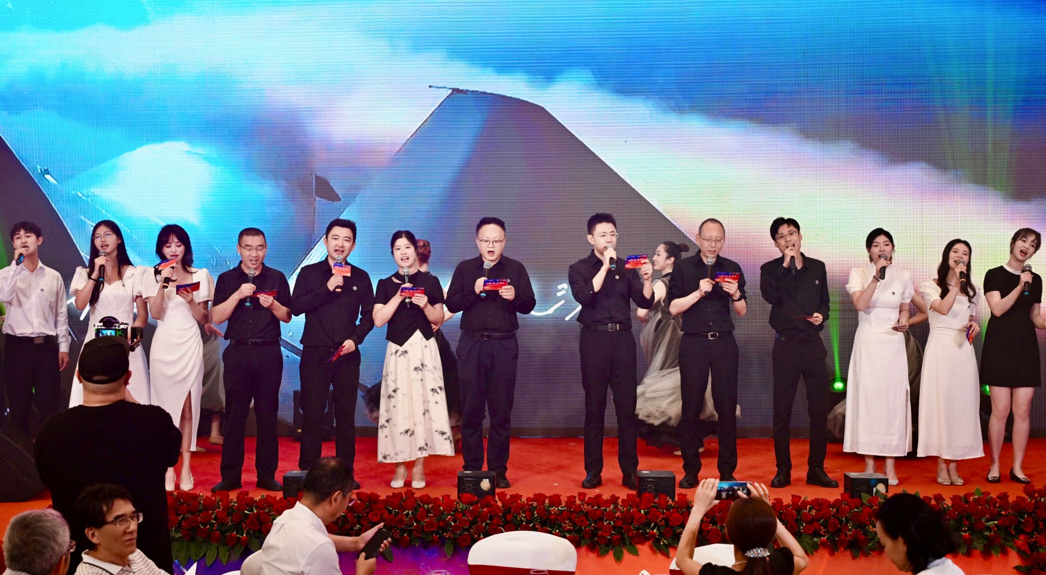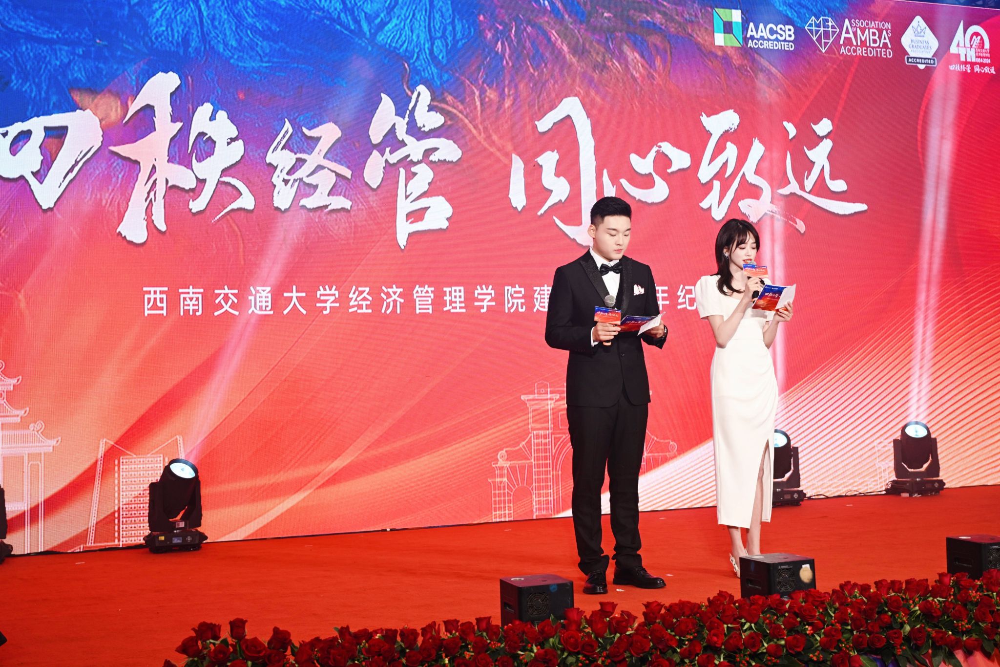 优秀院友甘霖带来的歌曲演唱《三峡情》诉说深刻情谊,晚会气氛在经管师生的合唱歌曲《一路生花》中推至高潮。在西南交通大学校长助理宋新提议下,在座宾朋共同庆祝易游体育