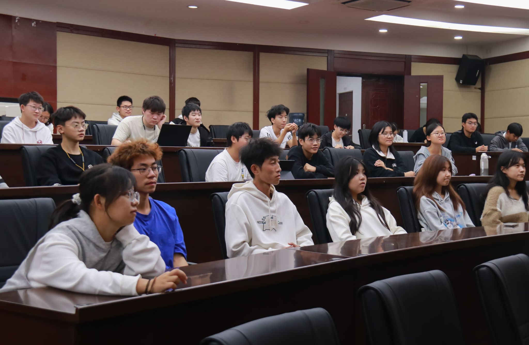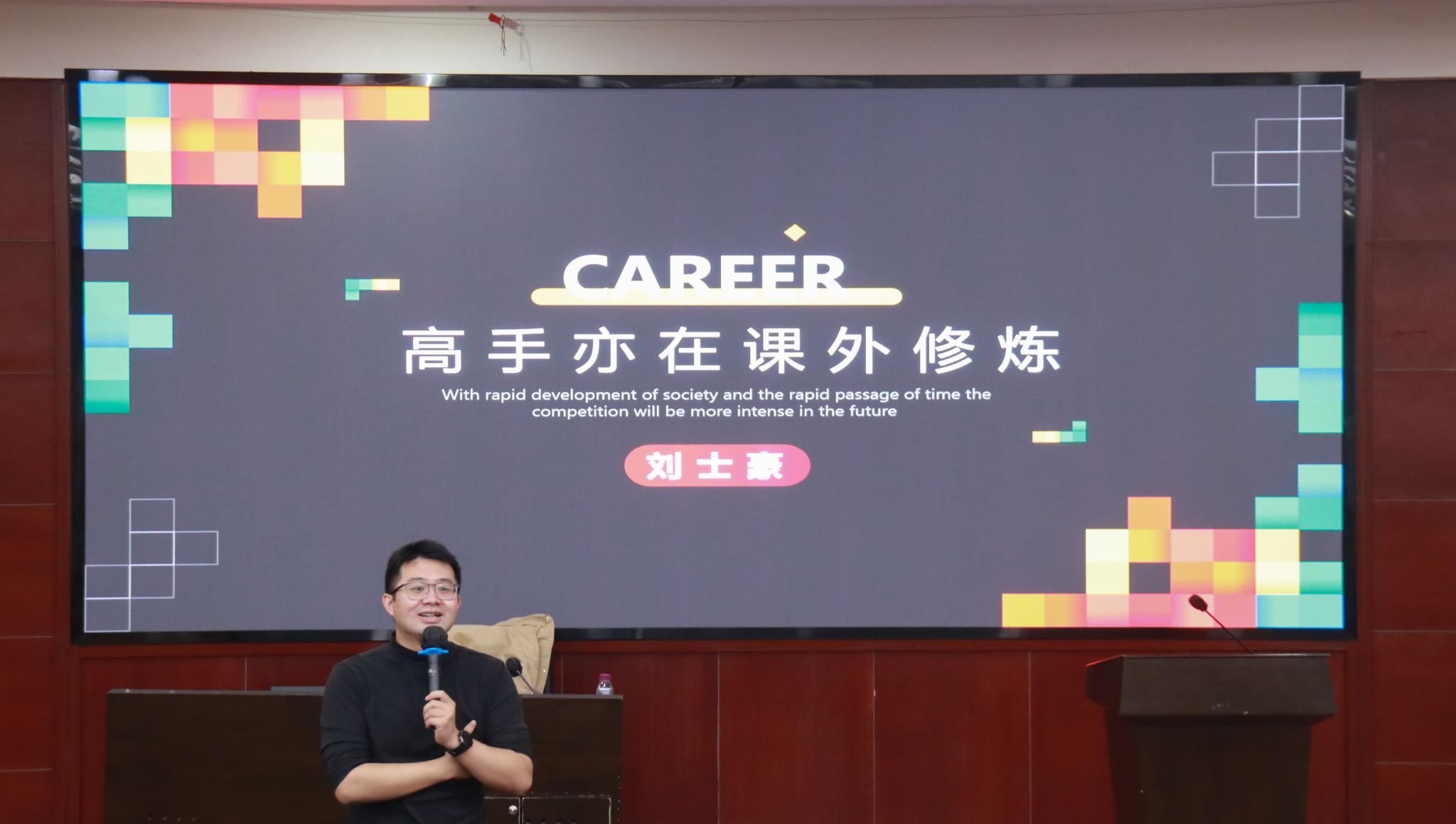 最后,刘士豪引导新生们思考对未来的发展规划,提醒大家要善用大学时光,为将来的职业生涯奠定坚实的基础。他的分享不仅激励了在场的新生,也促使新生开始认真思考自己的大学生活和未来方向。
