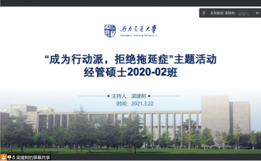 硕士2020级2班举办“成为行动派,拒绝拖延症”的主题班级活动,全班同学积极参加本次活动。本次班级活动分为视频学习以及拖延症测试两项。