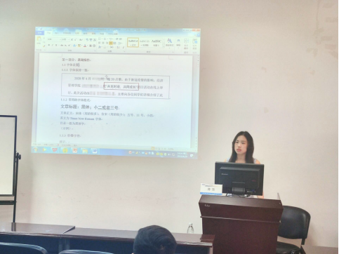 2022年4月29日下午,“星火经英”计划第九期第八次团干部培训于J0217顺利举行。本次培训的主讲人为2018级辅导员薄慧,主题为“Office办公软件之Word进阶培训”,本次培训旨在带领同学们灵活使用Word进行办公,提高文字处理能力。