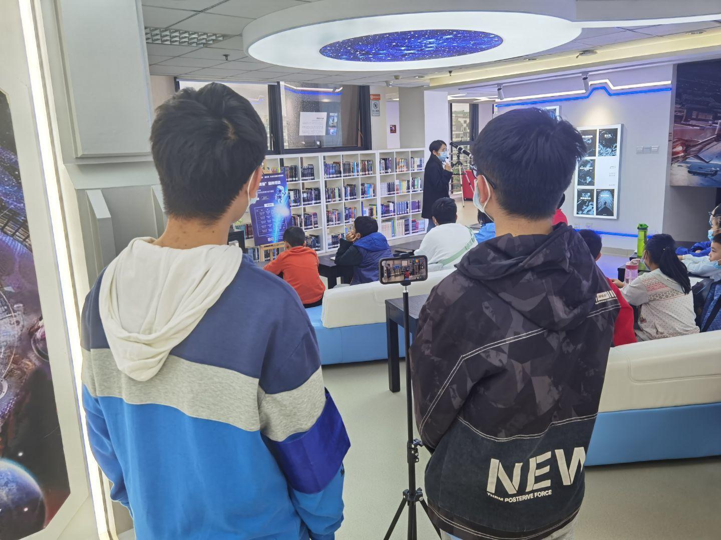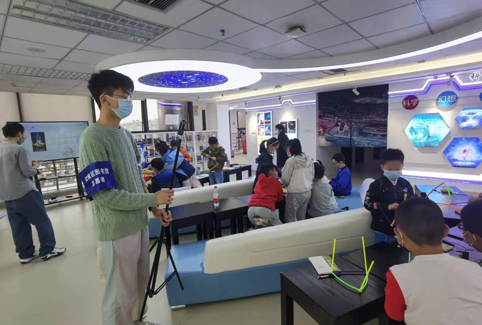 2022年3月20日,志愿小队继续在武侯区图书馆开展了以协助“创客”课程为主的志愿服务活动,该日活动还包含图书分类整理、楼层巡管劝导等常规志愿活动。