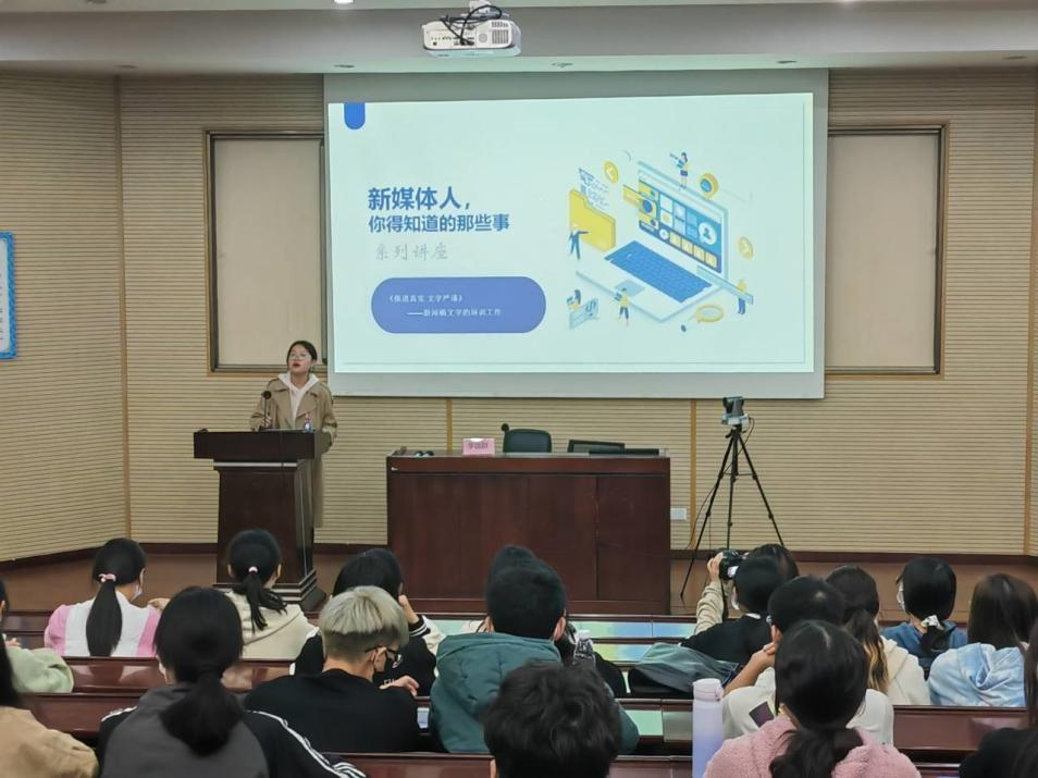 随后,李逸群为同学们介绍了在撰写新闻稿时容易出现的错误,如错别字、标点符号使用不正确等,并分享了在新闻报道中需要防范的重大差错参考指南,以帮助同学们避免出现这样的问题。