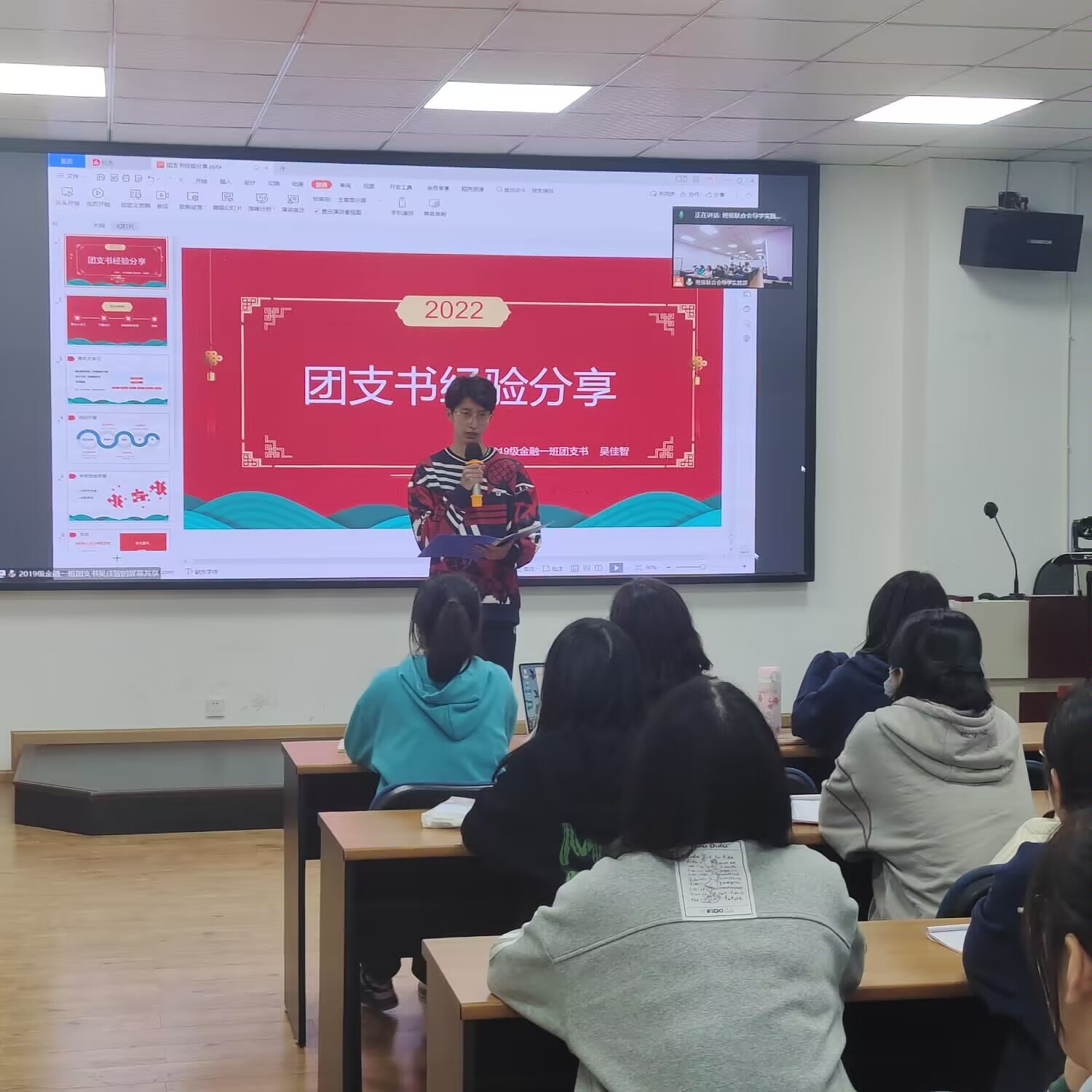 本科2021级、2022级各班班长、团支书、学习委员,分为三个会场在J0316(班长场)、J0317(学委场)、J0318(团支书场)同时进行。本次培训会邀请到了本科2019级的田甜、宁懿文、吴佳智三位同学作为主讲嘉宾进行经验分享。