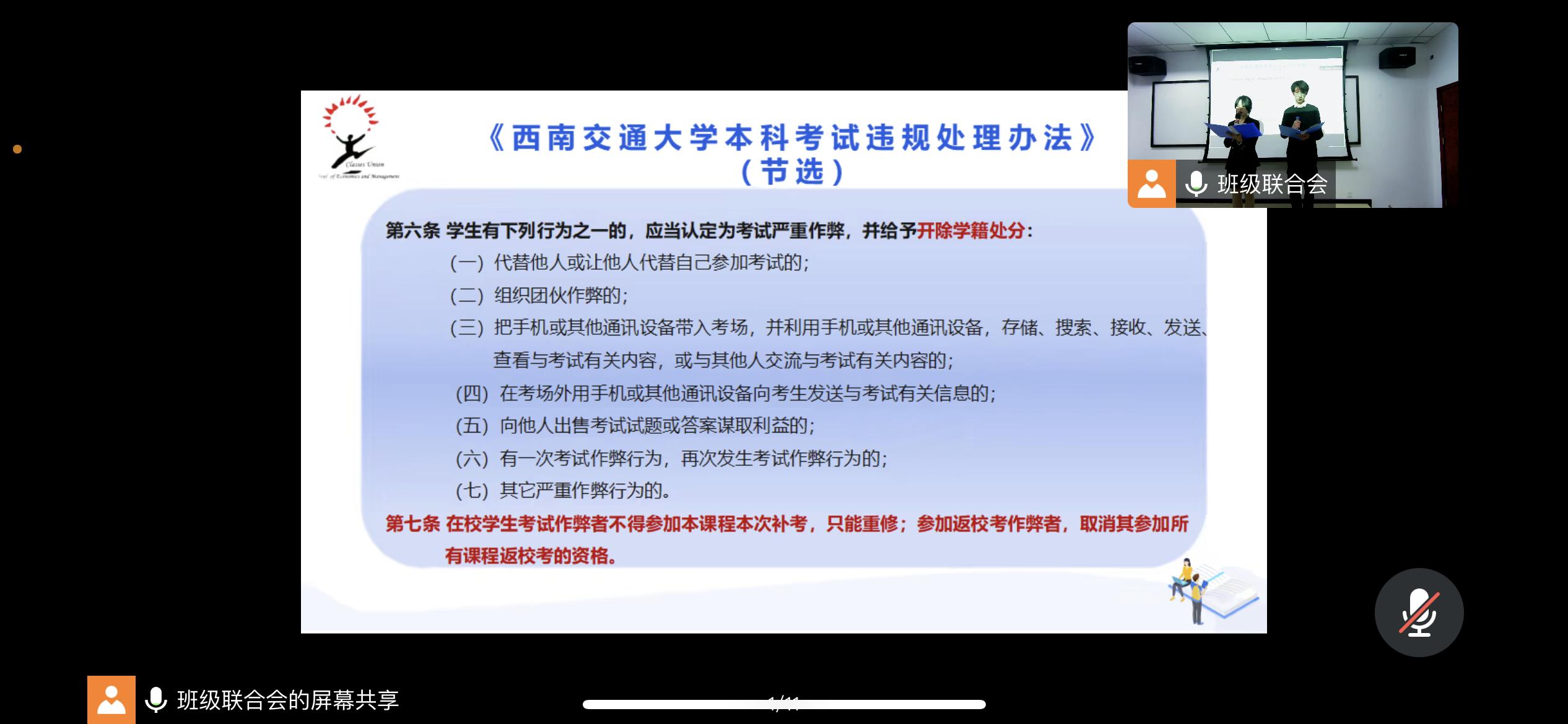 各班级答辩完后,班联进行了诚信考试教育,并对同学们发起诚信考试倡议,鼓励同学们珍惜时间、积极备考,稳扎稳打、自信应考;严肃考风、恪守考纪,慎思笃行、诚信考试。