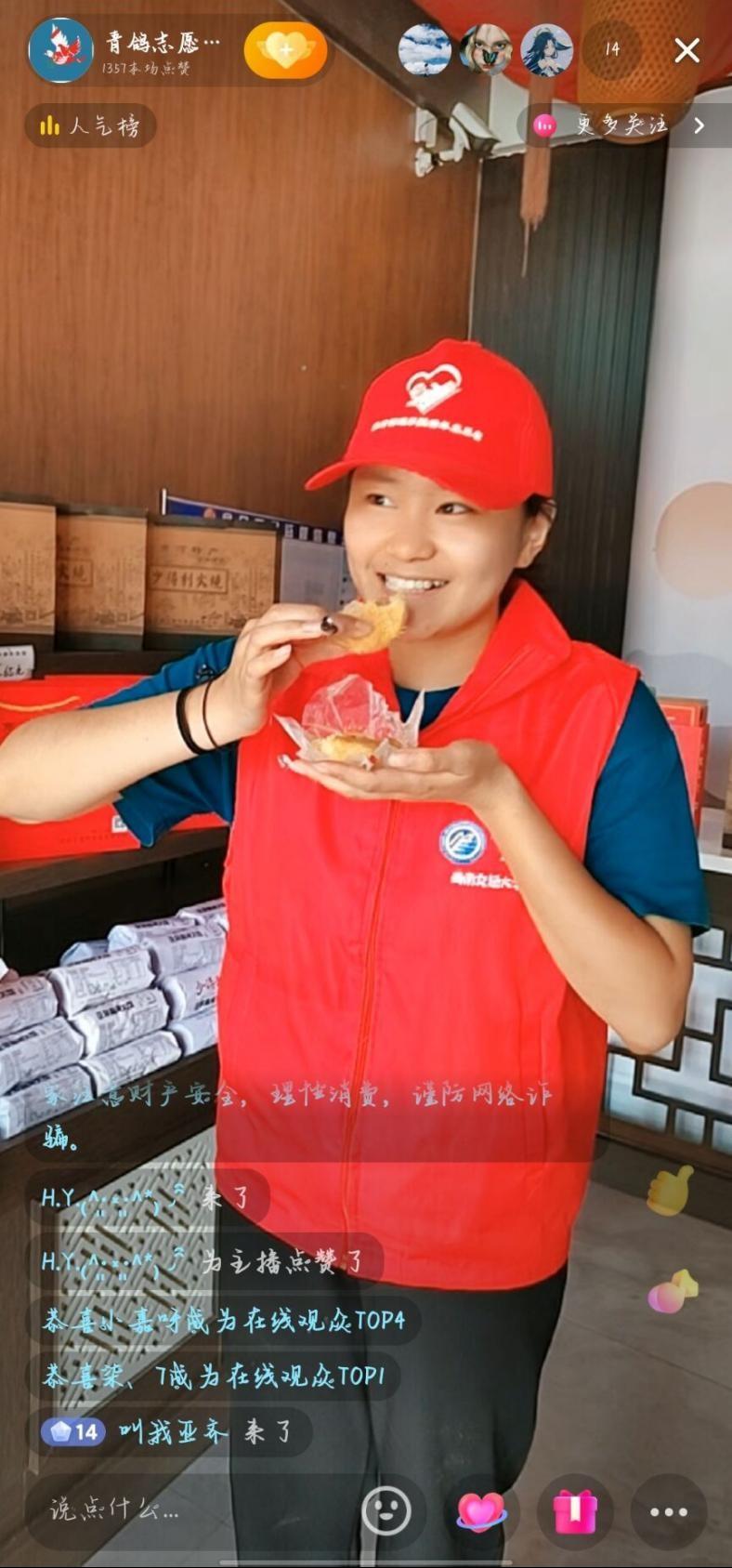 实践的第二部分是对非遗手艺的推广宣传。实践队来到龙桑寺少得利非遗廉洁文化展馆,济南少得利食品有限公司经理李敏向青鸽志愿服务队成员详细介绍了少得利火烧的由来及历史发展,与实践队员们共同观看了少得利火烧的制作过程。火烧的制作工艺在来自外地、甚少劳作的学生们看来既新鲜又具有挑战,实践队员们在非遗传承人的带领下,共同参与了火烧的制作活动,通过亲自动手实操,实践队员们纷纷感叹非遗手艺的精妙和传承的不易。对少得利火烧有了更详细的了解之后,实践队员们在抖音平台开启了少得利火烧的介绍直播,通过对火烧制作手艺、历史传承及风味特点的描述,向大众推广宣传少得利火烧,在抖音平台获得了一定的关注度。