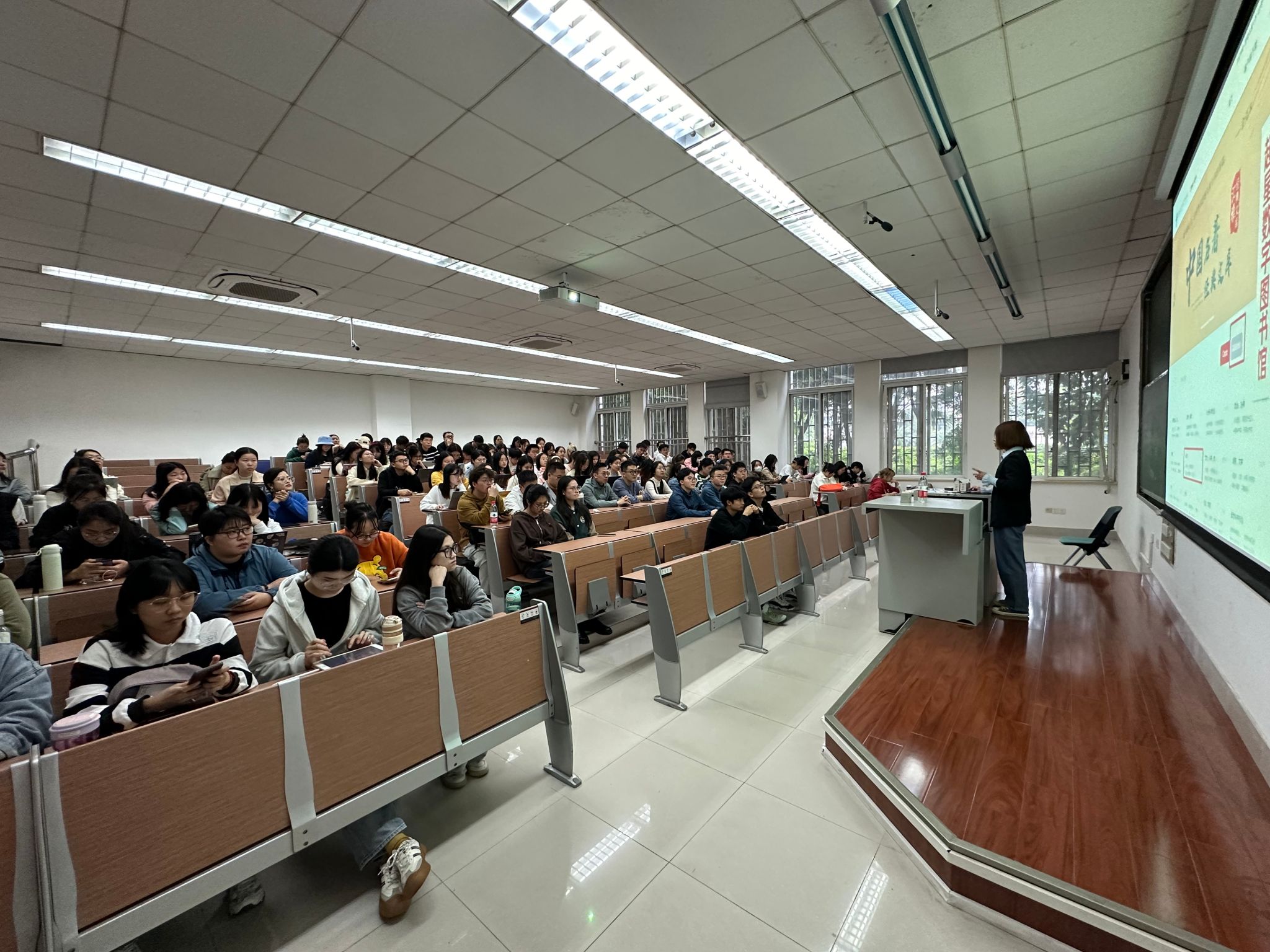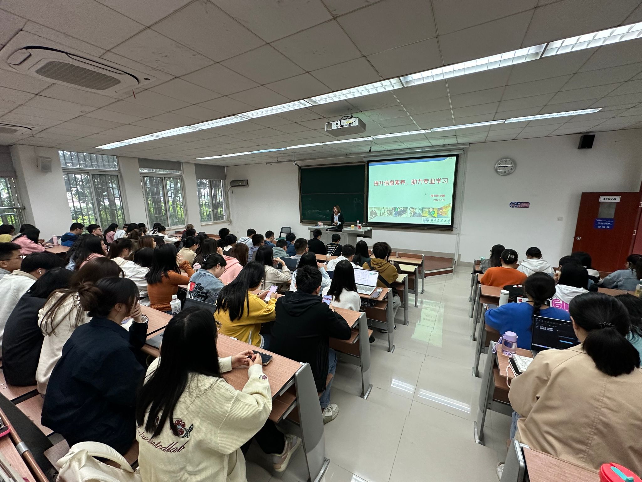 辅导员李勇首先对李颖老师做了介绍,李颖老师对图书馆数据库应用和重要信息检索的基本方法、获得途径,检索技巧等方面有资深经验。紧接着李颖老师以“提升信息素养,助力专业学习”为主题,从三个方面向大家介绍了图书馆数据库的应用方法和技巧,也系统阐述了“电子图书的获取”、“期刊论文的获取”、“学位论文的获取”、“数值数据信息的获取”和“免费学术资源——开放获取”。