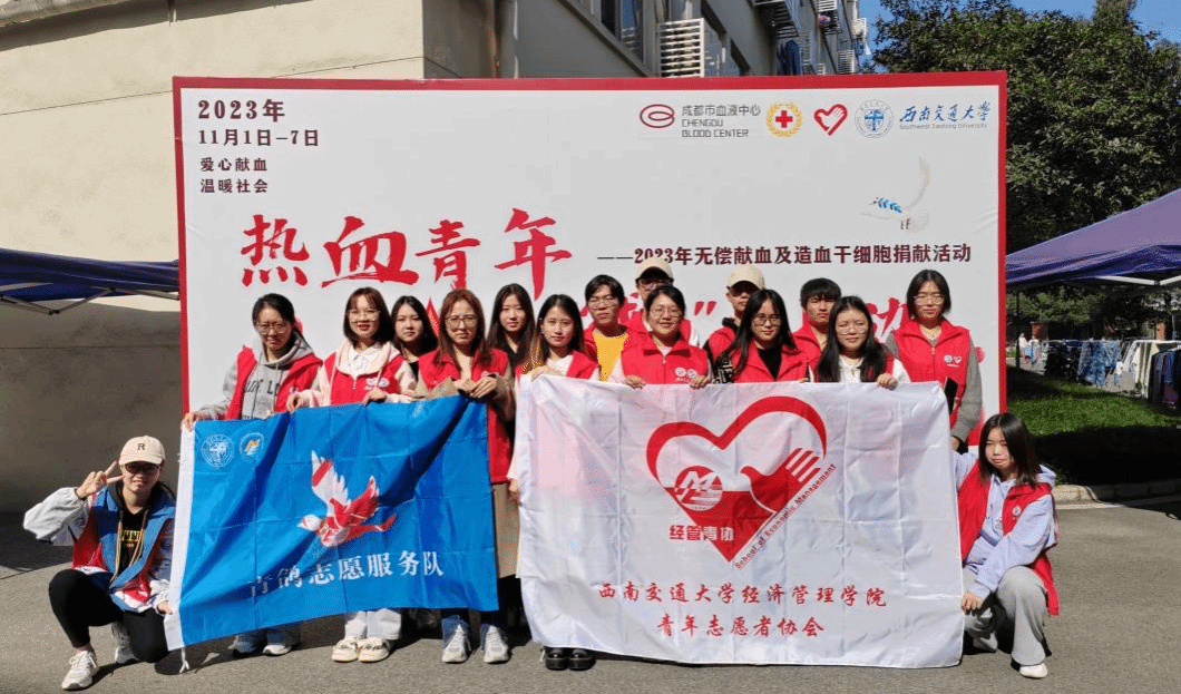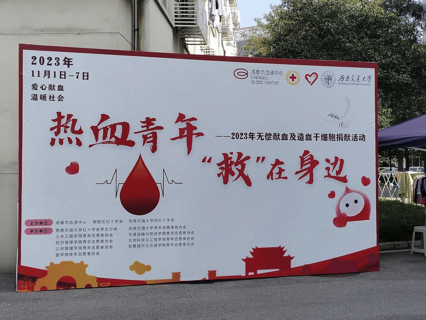 青年志愿者协会承办的热血青年、“救”在身边——2023年无偿献血及造血干细胞捐献活动分别在犀浦校区和九里校区顺利开展。
