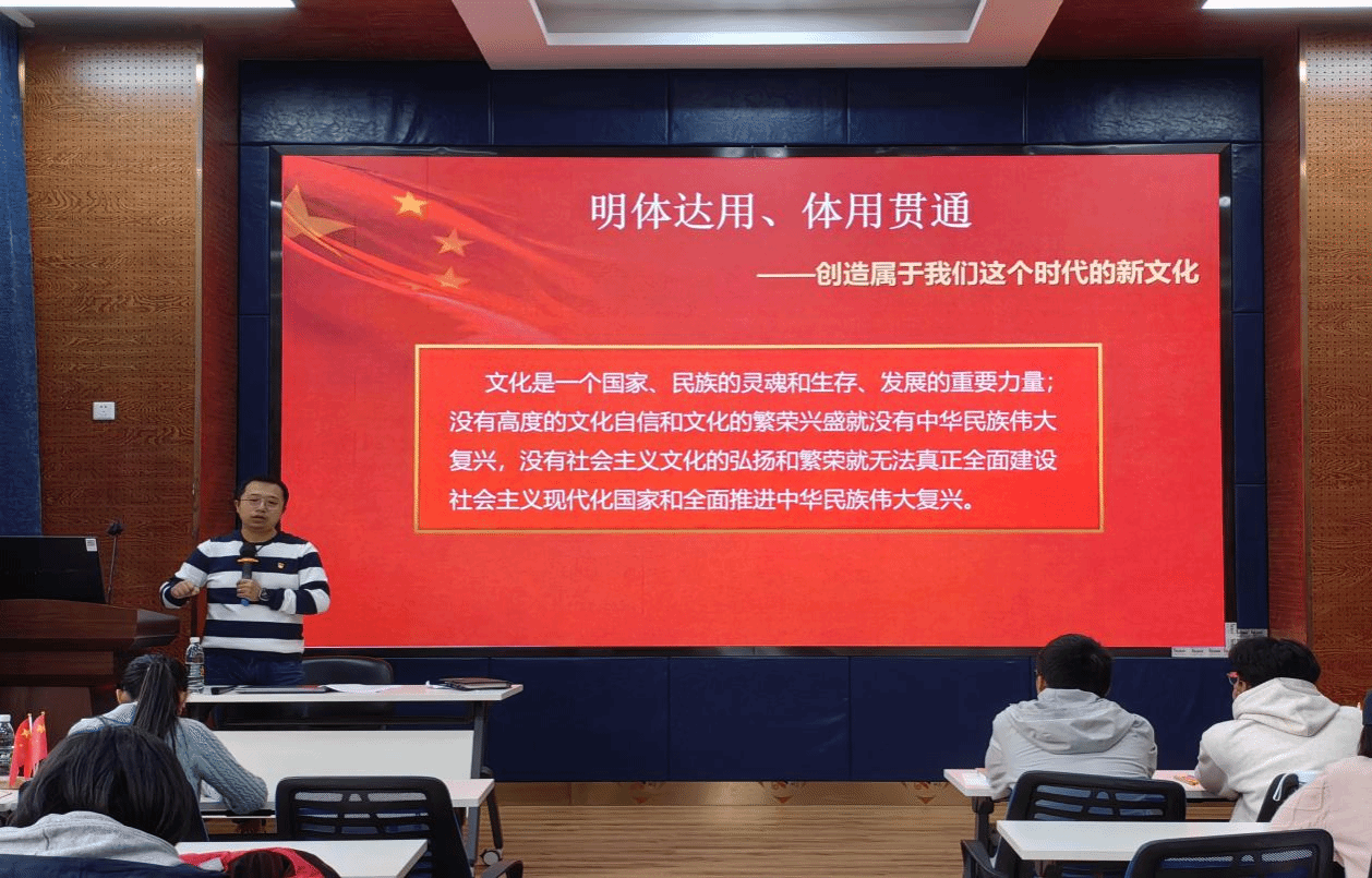 团委书记廖凡老师为本科2023级工商管理类6班和经济与贸易类3班进行了《习近平文化思想——为全面建设社会主义现代化国家全面推进中华民族伟大复兴提供坚强思想保证强大精神力量有利文化条件》的宣讲。此外,参加本次学习的还有易游体育官方网站