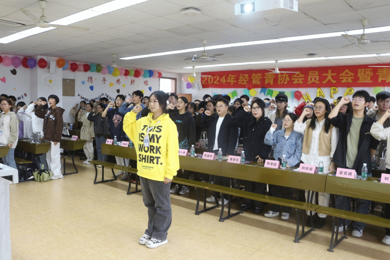 下午2:20,大会正式开始。主持人致开场词介绍参会嘉宾,播放青协回顾视频,介绍青协组织结构与概况。紧接着,陈建奇发表致词,他对青志联、兄弟青协会长和新干事的到来表示了热烈欢迎,对上一届主席团成员的辛苦付出表示衷心感谢。青协的不断进步,离不开每一代青协人的努力和奉献。随后,他对青协在过去一年取得的成就进行了总结,对经管青协未来的发展寄予厚望。他强调:“欲使志愿活动持续绽放光芒,每位青协成员都应脚踏实地,一步一个脚印;稳步迈进,一年一个台阶;接力奋进,一届一份答卷。”最后他向青年志愿者们表达了感谢和敬意,希望大家能保持初心和热情,为青协的发展贡献自己的力量。接下来,前任会长黄家仪分享了她在青协三年来的收获与成长经历,表达了对青协未来发展的美好祝愿,希望青协能够不断进步,取得更加辉煌的成绩。最后现任会长赵心榆希望大家在未来的工作中,永远怀揣着“但因热爱,愿迎万难”的热忱与激情,以严谨的态度和创新的精神,认真对待每一件事,团结协作,积极投身志愿公益活动,弘扬青协精神,践行青春使命,实现自我价值。