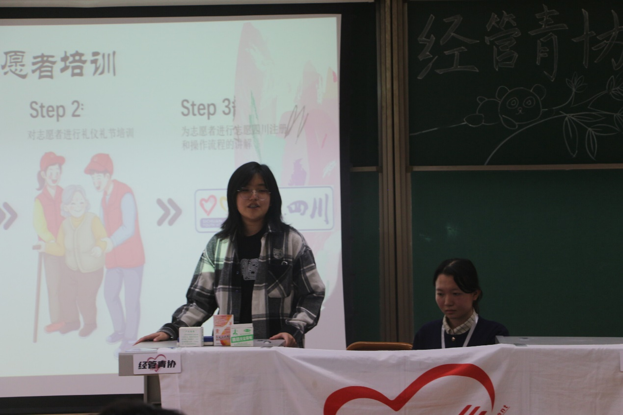 在才艺表演的间隙,大会还为新干事介绍了许多青协相关内容,例如外联部宣讲了特色专项服务:聚焦儿童群体的交大幼儿园、关注老年群体的敬老院、关注社会残障人士的阳光家园、关注自闭症儿童的善工家园,以五个志愿者基地为基础,青协的志愿服务走向社会,让全社会看到当代大学生的爱心和奉献精神;活动部讲解了志愿四川操作流程,包括注册账号、加入组织、参与活动的方式,解读星级志愿者评定细则,详细介绍了成为不同等级的星级志愿者需要的服务时长和申请流程,并鼓励大家积极参加志愿活动,努力成为一名星级志愿者;实践考核部则讲解了寒暑假社会实践活动和交通公益内容:寒暑假社会实践活动在学校发布通知后,由实践考核部收集报备资料和总结材料,并协助评优,在截止日期前制定计划并上交,等待立项通知。交通公益在原有实践项目赛道的基础上,加入了创意项目赛道和文化产品设计作品赛道,增加了作品形式,让更多队伍有机会进入省级志愿服务大赛继续展示自己。此外,在经验分享中,各部门建议新干事要提前制定详细计划,联系当地部门或机构尽可能获得支持,实施过程中要与当地居民进行良好沟通,确保活动顺利进行。青年志愿者是一个响亮的名字,青年志愿者行动是一项崇高的事业,青年志愿者精神,是一代青年的精神追求。通过这些专业讲解和实践分享,增强了大家对志愿服务的理解,激发了大家参与志愿活动的热情,将爱心和责任传递给更多的人。