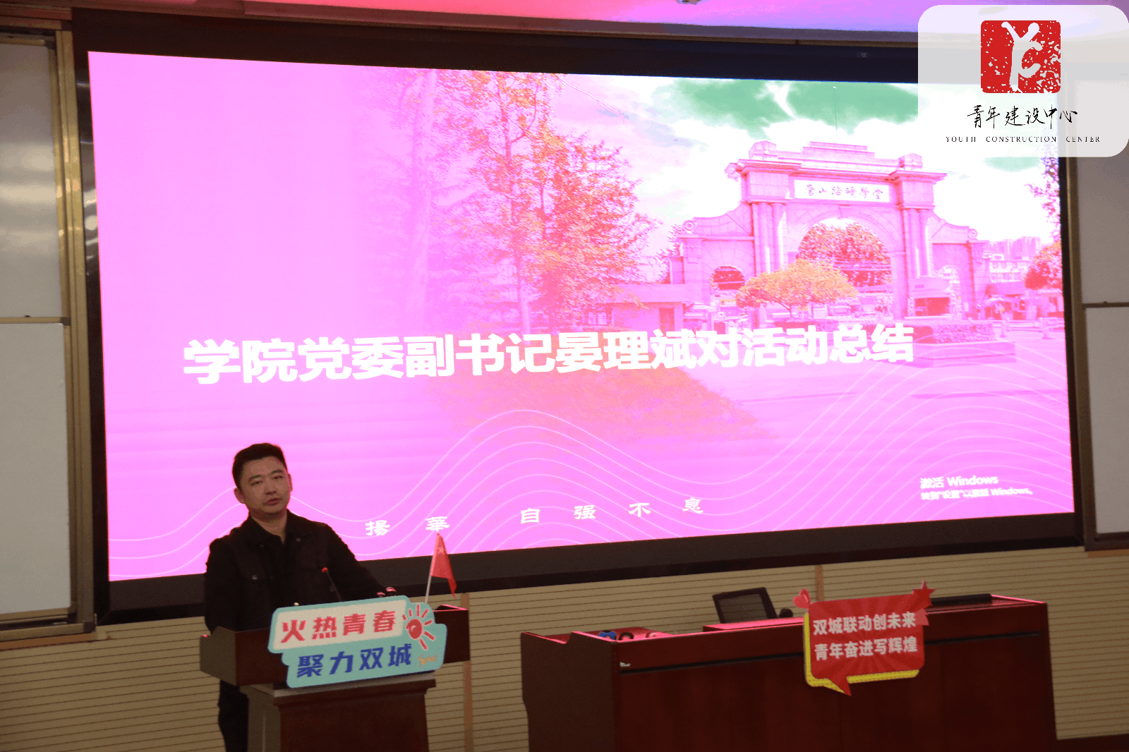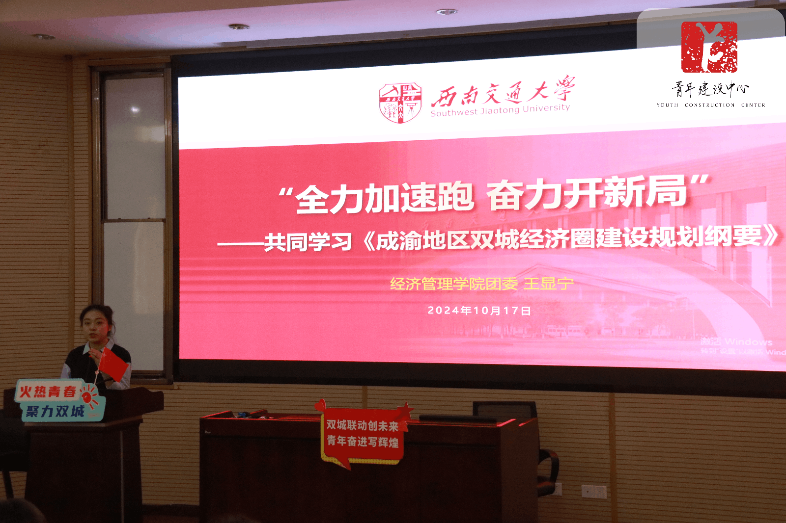 最后,晏理斌老师对活动进行总结,分为四个要点:一、要落实党的纲要,以成渝联动推进高质量发展,形成西部增长极,打造内陆开放战略要地。二、关注新能源、新材料、新制造、电子信息等前沿领域,优化课程体系,为新质生产力的发展贡献交大经管新力量。三、希望团员青年了解专业岗位、就业机会、社会需求,明确职业目标,掌握求职技巧,提高就业质量。四、新时代青年应以身入局,以青春砥砺致敬时代使命,为实现中华民族伟大复兴的中国梦接续奋斗。