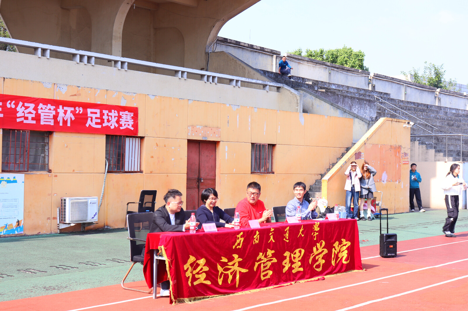 2024年“经管杯”足球赛开幕式暨揭幕战在九里校区足球场举行。研究生辅导员王哿老师,西南交通大学体育易游体育