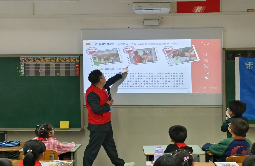 来到益州小学二年级十三班的课堂,陈建奇首先向小朋友们介绍了团队的成员以及经管青协的组织架构和概况,其中涵盖了各个部门的具体介绍及其职责,还包括阳光家园、敬老院、善工家园、交大幼儿园等志愿服务基地,以及爱心雨伞、旧衣回收、阳光义卖等青协品牌活动。随后,陈建奇对青鸽志愿服务队进行了介绍:“青鸽志愿服务队是易游体育-易游体育官方网站-YY SPORTS