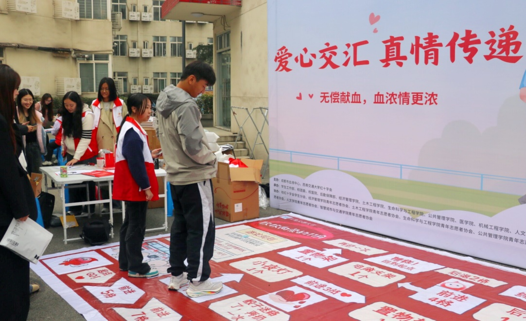 青年志愿者协会等共同承办的“爱心交汇,真情传递”无偿献血进校园活动于11月22日在西南交通大学九里校区成功举行。