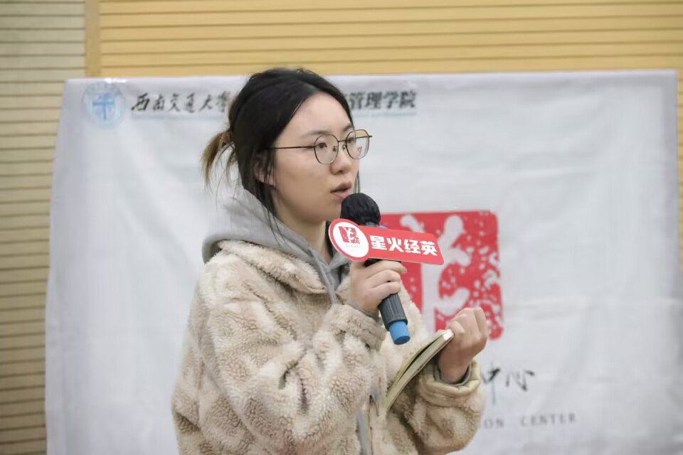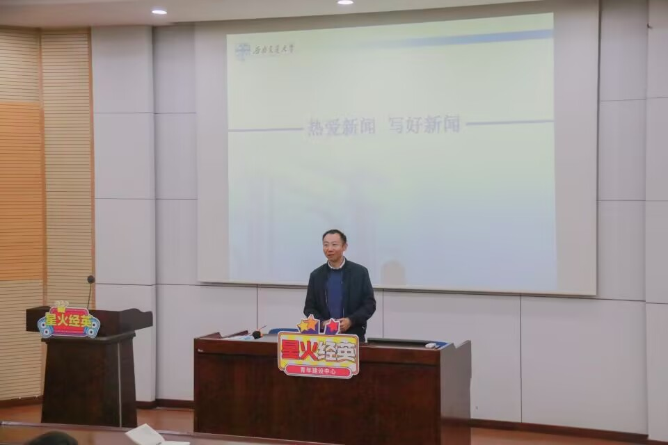 20241127号晚,“星火经英”计划第十四期第七次团干部培训于J0215顺利开展,出席活动的嘉宾有:西南交通大学党委宣传部老师阮琦,本科生2024级辅导员、经英传媒中心指导老师王重月。本次团干部培训由阮琦老师主讲,主题为热爱新闻,写好新闻”,旨在分享新闻的写作方法和技巧,帮助团干部们提升学写新闻的能力,并学会将写作技巧合理地运用在日常的新闻撰写中。