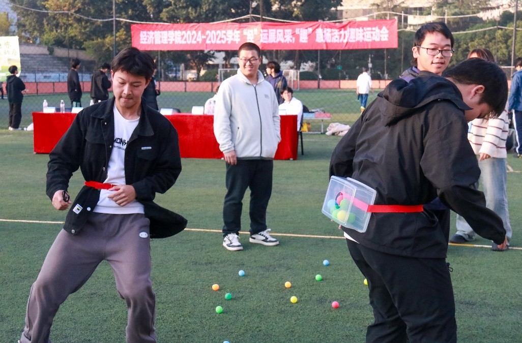 在九里校区田径场举办了以“经”运展风采,“趣”意扬活力为主题的趣味运动会。