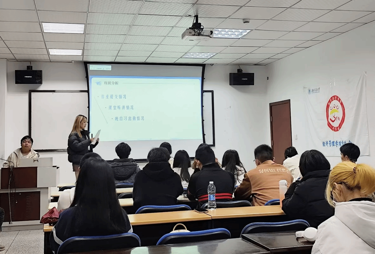 在学风建设活动方面,本科各年级紧密围绕同学们的实际需求,策划并组织开展了涵盖生涯规划、创新创业、专业分流、科研竞赛、考研保研等方面丰富多彩的主题活动,旨在全面提升学生的学术能力与综合素质。2021级组织每日考研打卡激励同学们坚持学习,同时通过考研慰问活动为考研学子送去温暖和鼓励,增强同学们的考研信心和动力。2022级邀请竢实扬华奖章获得者、推免至复旦大学的杜齐阳开展保研经验分享会,对两种升学方式以及部分学校的保研要求、推免比例、加分政策等进行详细的介绍,在备考策略、面试技巧和心态调整等方面进行了经验性的指导。2023级、2024级各班邀请优秀学长学姐以及专业教师分享宝贵经验与心得,开展线上线下英语打卡、每日学习内容总结等活动。这些活动不仅激发了同学们的学习热情,也促进了他们更加主动地投入到学习中去,营造了一个积极向上的学习氛围。