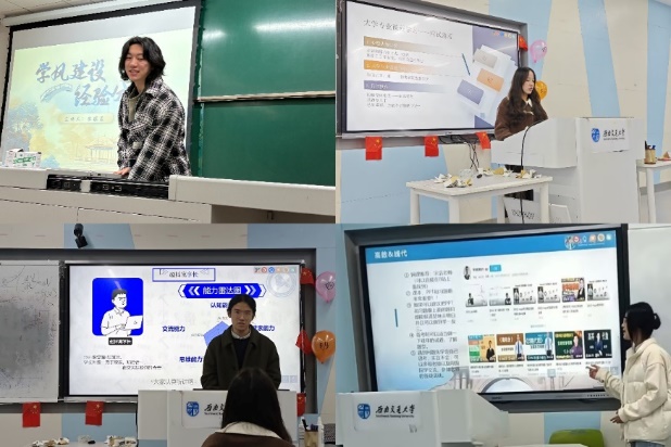 思想铸魂维度:以年级大会形式集中开展“开学第一课”,引导新生坚定理想信念;邀请“音乐里的故事”讲演团开展音乐里的思政课,帮助新生在音乐中坚定信念、挺膺担当;邀请专家开展校史校情讲座,增强新生归属感和荣誉感。生活适应维度:九里校区游园会让新生在轻松愉快的氛围中熟悉校园环境;培养方案解读答疑会,帮助新生了解专业培养目标、做好学业规划;资助政策解读会,切实保障家庭经济困难学生成长成才,为每一位同学的全面发展保驾护航。行为规范维度:规章制度解读会,引导新生明确行为规范,遵守校规校纪;学风督导经验分享会,任课教师、班主任老师齐上阵,引导新生树立正确学习态度,养成良好学习习惯;九里堤派出所民警为新生开展网络安全知识宣讲,引导新生对网络诈骗说“不”。生涯引导维度:邀请行业专家开展经管行业解读会与求职规划指导,院友校友分享经管领域的最新动态和职业发展趋势,帮助新生了解行业前景,明确职业方向;开展新媒体培训指导,帮助新生提升个人核心竞争力。心理健康维度:加强日常心理健康教育,引导新生学会有效的情绪管理与压力调节方法,筑牢心理健康“防护堤”;花香进寝室园区,让鲜花种植行动调节学习压力,用美育沁润身心。经管易游体育
