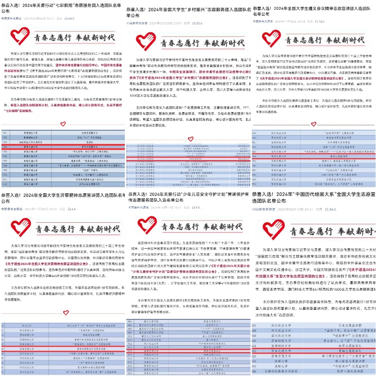 青年志愿者协会高度重视组织建设,2024年新增志愿者人数达到本科新生人数的100%,目前在团省委“志愿四川”志愿服务平台注册人数2683人。