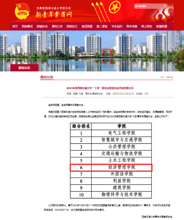 青年志愿者协会荣获“十佳青协”荣誉,取得了优异的成绩。