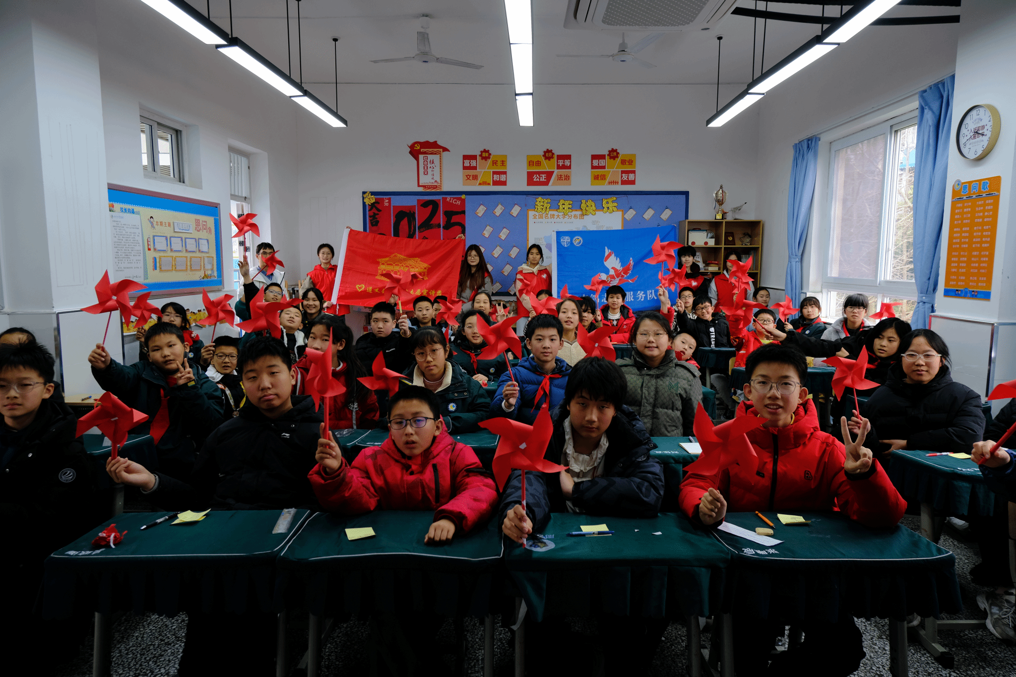 在讲完遵义会议精神后,服务队队员带领小学生们动手制作风车。队员们耐心地演示着每个步骤,从剪裁到固定,小学生们专心投入,兴致勃勃地参与其中。通过亲手制作风车,锻炼了孩子们的动手能力和创造力,让他们在互动中学会互助与分享,培养了集体主义精神和爱国情怀。