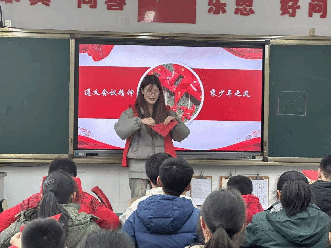 2025年3月7日下午,西南交通大学青鸽志愿服务队走进西南交通大学子弟小学,开展“传承红色基因,讲好遵义故事”宣讲活动。此次宣讲,旨在让新时代的少先队员们从红色足迹中汲取力量,于革命薪火里传承信仰,点燃少年报国雄心。