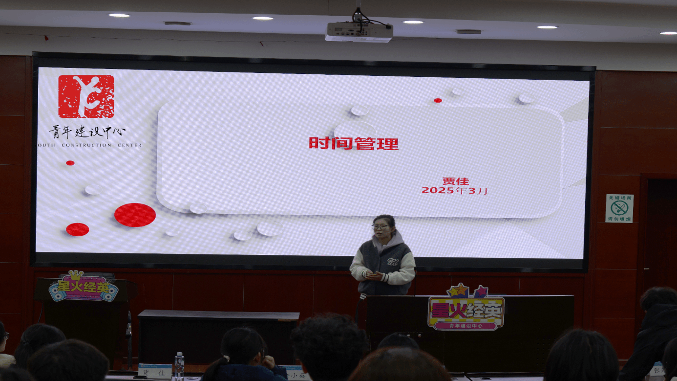 随着开班仪式的圆满落幕,本学期首次团干部培训正式拉开帷幕。本次培训由贾佳老师主讲,主题聚焦于“时间管理”。贾佳老师巧妙运用“视频-讲解-提问”的教学模式,生动形象地诠释了时间的概念。她紧密结合同学们的生活实际,引导大家深入思考时间规划的重要性。在贾佳老师的讲解下,同学们不仅深刻认识到了时间管理的紧迫性,更掌握了科学有效的时间规划方法。培训接近尾声时,贾佳老师以“明确人生意义,活出精彩人生”作为结语,为本次培训画上了圆满而富有深意的句号。