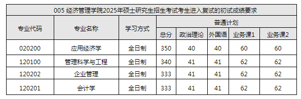 各专业非专项计划的考生,初试成绩达到下表中对应专业的成绩要求,方才具备复试资格。