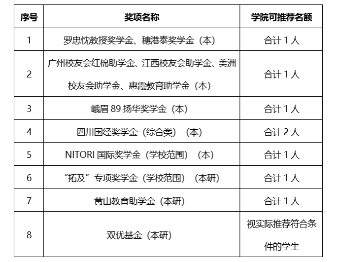 2. 学校范围专项奖助学金可推荐名额