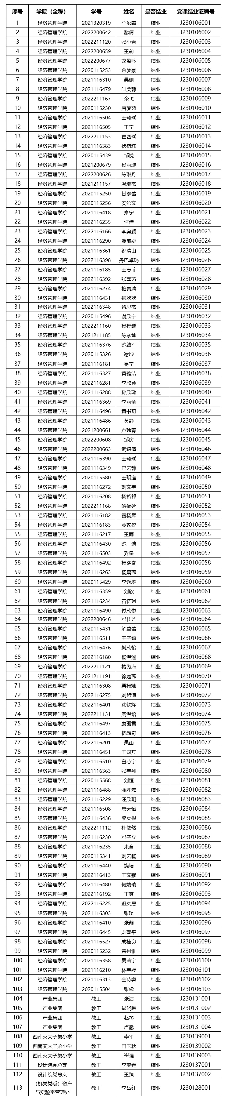 易游体育官方网站 分党校2023-01期入党积极分子党课结业名单