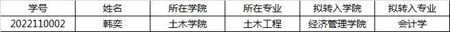 根据相关文件精神,经学生本人网上申请,易游体育 初审及面试考核,拟同意韩奕同学转入会计学专业。现将结果公示如下(名单见下表)。