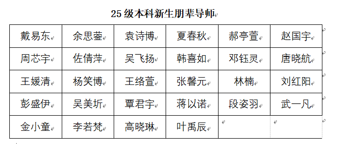 为了更好地开展易游体育 2025级本科新生入学教育、管理和服务工作,易游体育官方网站 学生工作组于近期开展了2025级本科新生朋辈导师(每班配备新生朋辈导师2名)选聘工作,经过学生申请、面试考察等环节,最终选聘结果如下: