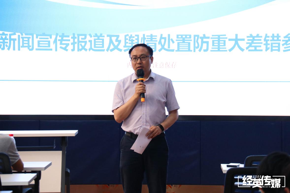 阮琦首先与大家讲解了新闻宣传报道中常见的重要错误案例,强调了新闻稿写作中一些关键词的正确用法。接着,他对网络舆情的类型、特点进行了介绍,并结合多个案例和工作经验对网络舆情处置提出了相应的举措,包括提高政治站位、强化主动宣传、增强主体意识、加强沟通交流、回应应对更细、线下工作更实等。