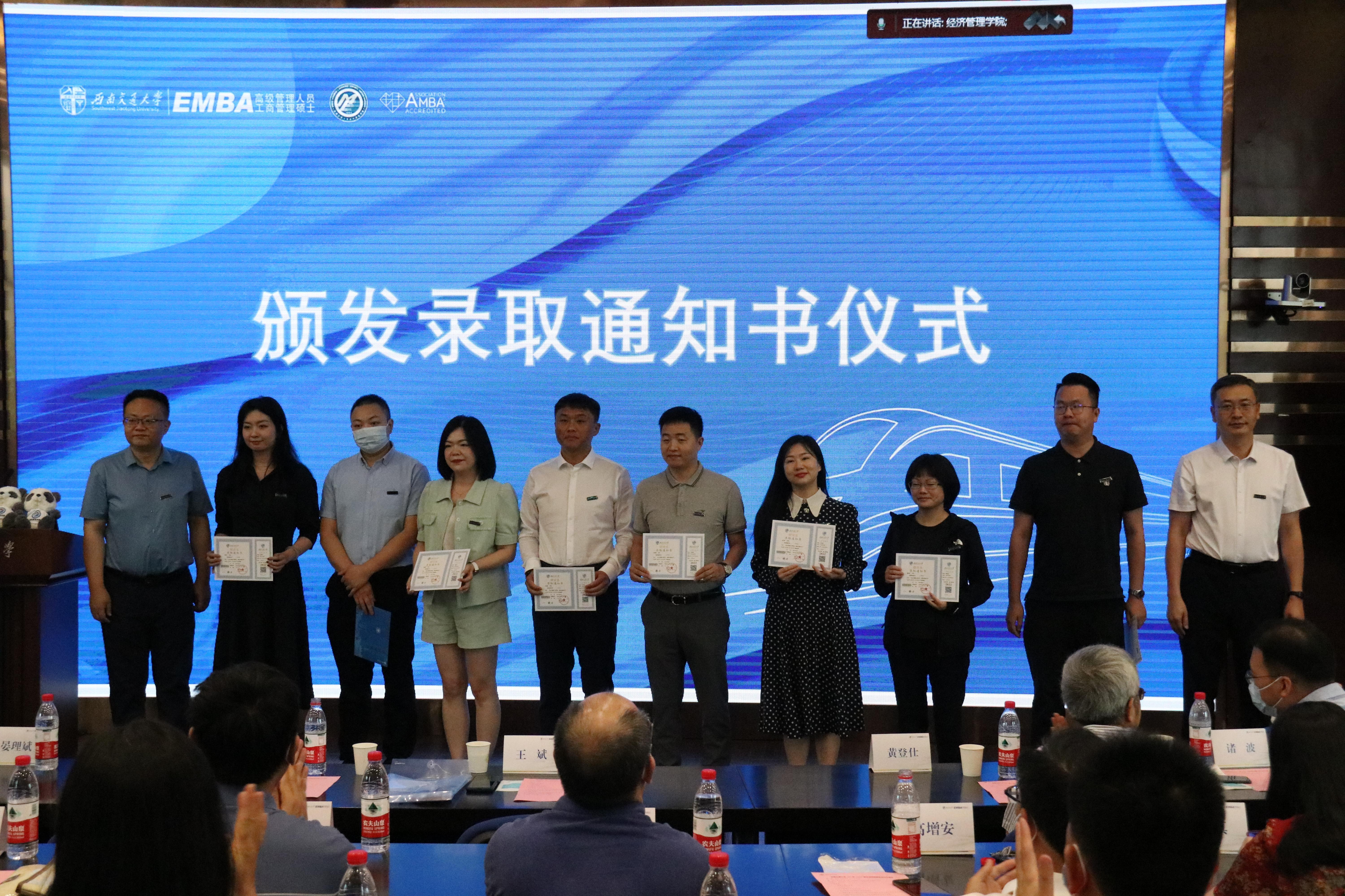 老师代表们为2022级EMBA新生颁发了研究生录取通知书。同学们领取西南交通大学录取通知书、佩戴西南交通大学校徽的那一刻,意味着成为了交大的一员,也意味着荣誉、责任和使命将伴随着大家接下来的学习生活,愿新同学们秉持学习的初心,在西南交大扬帆起航,实现新征程新梦想。