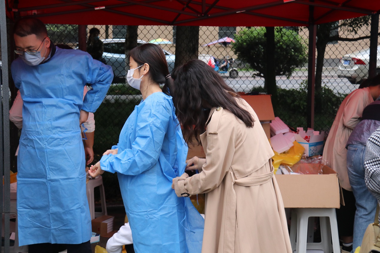 9月26日,雨后的九里校区,一群身穿蓝色防护服的经管志愿者老师、头戴小红帽的经管志愿者同学出现在了核酸检测的现场,给微凉的初秋增添了几分暖意。