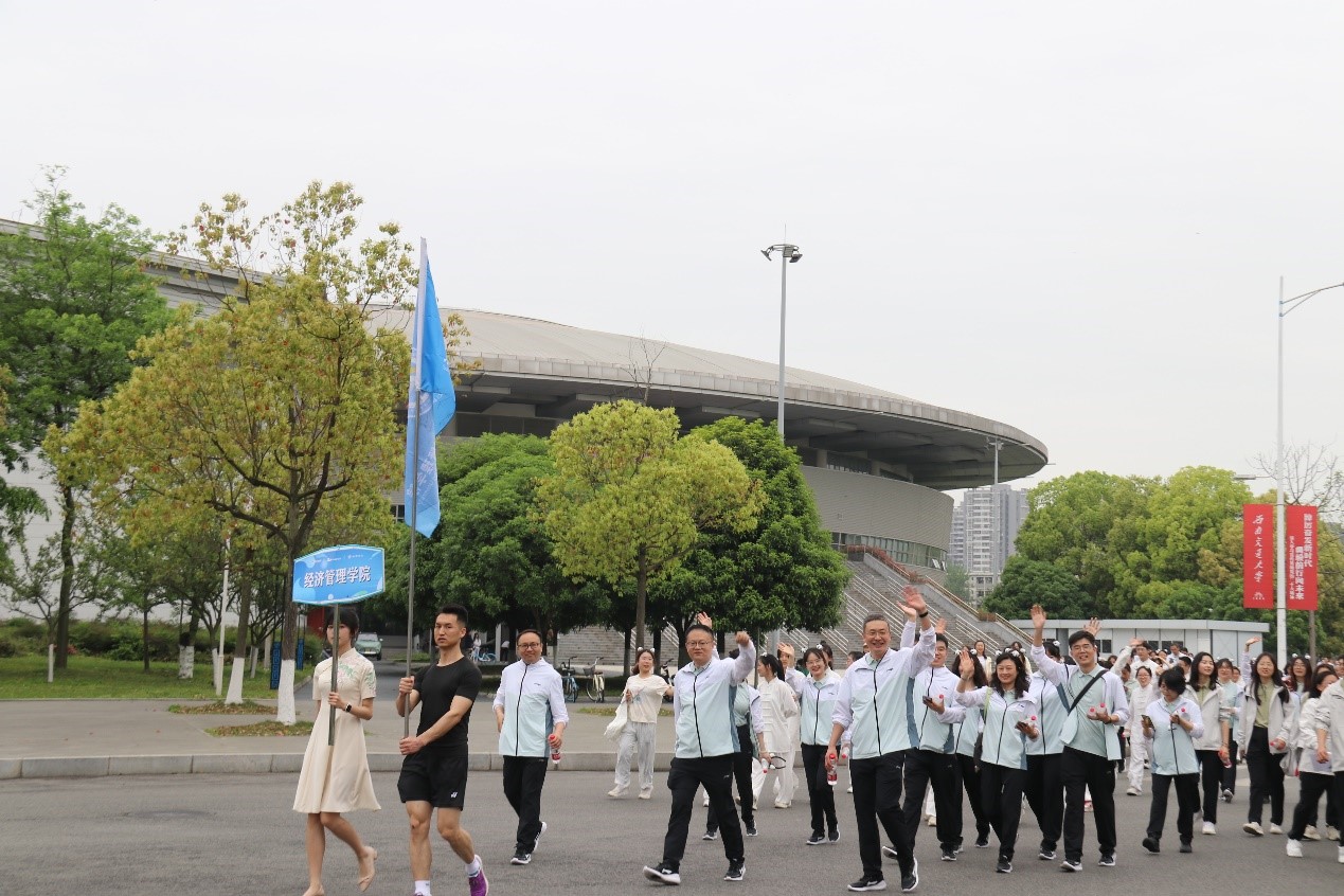 代表队由党委书记王斌、执行院长郭强、党委副书记杨宏毅、党委副书记晏理斌带领。他们朝气蓬勃,用洪亮的声音喊着口号:经世致用,管仲之风;扬我易游体育
