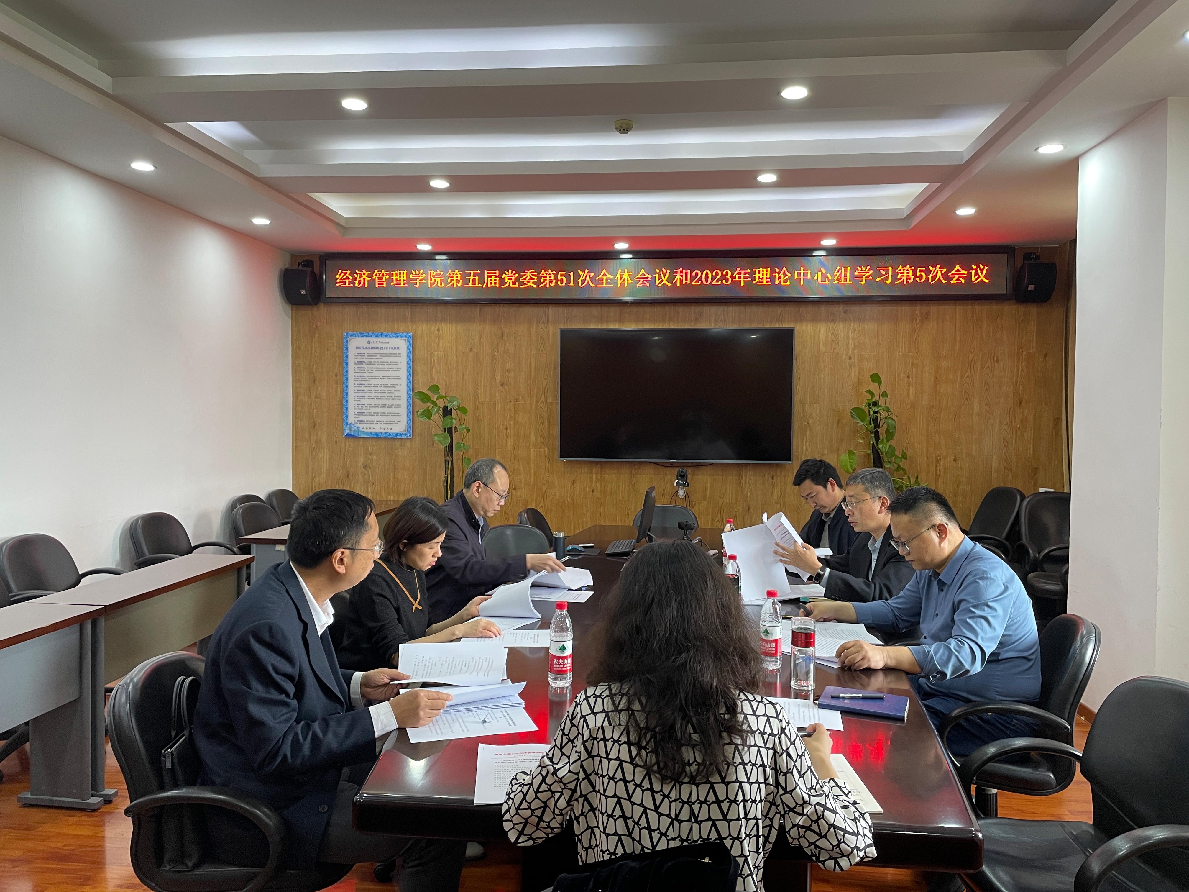 第五届党委2023年第5次理论学习中心组学习、第51次全体会议及2023年第9次党政联席会在九里校区零号楼0607会议室召开。