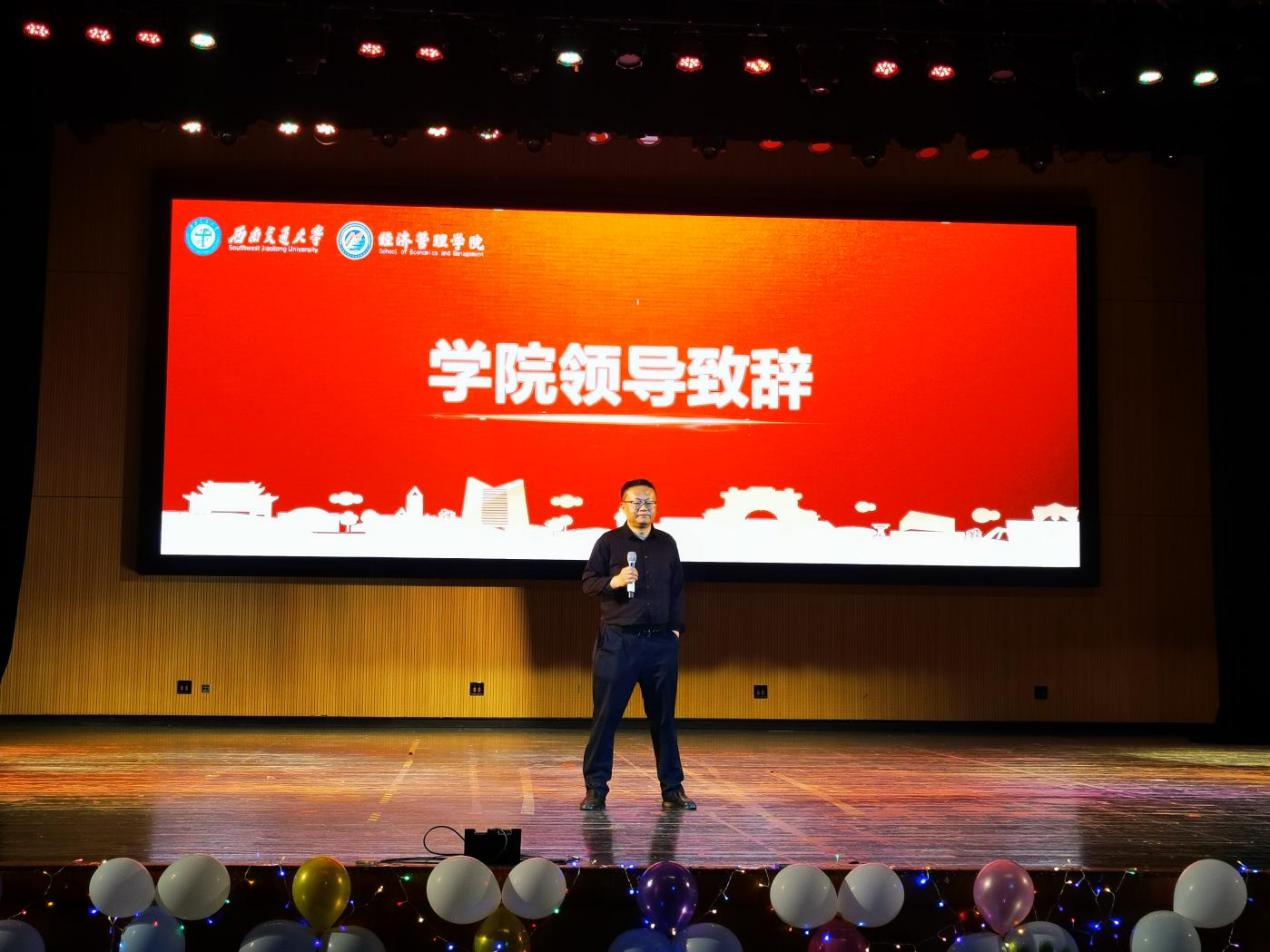 执行院长郭强为本次晚会致辞,郭院长对经管学子一直以来的努力奋斗表达了积极的肯定与鼓励,并热切期盼大家能够不负青春韶华,书写自己精彩的人生华章。