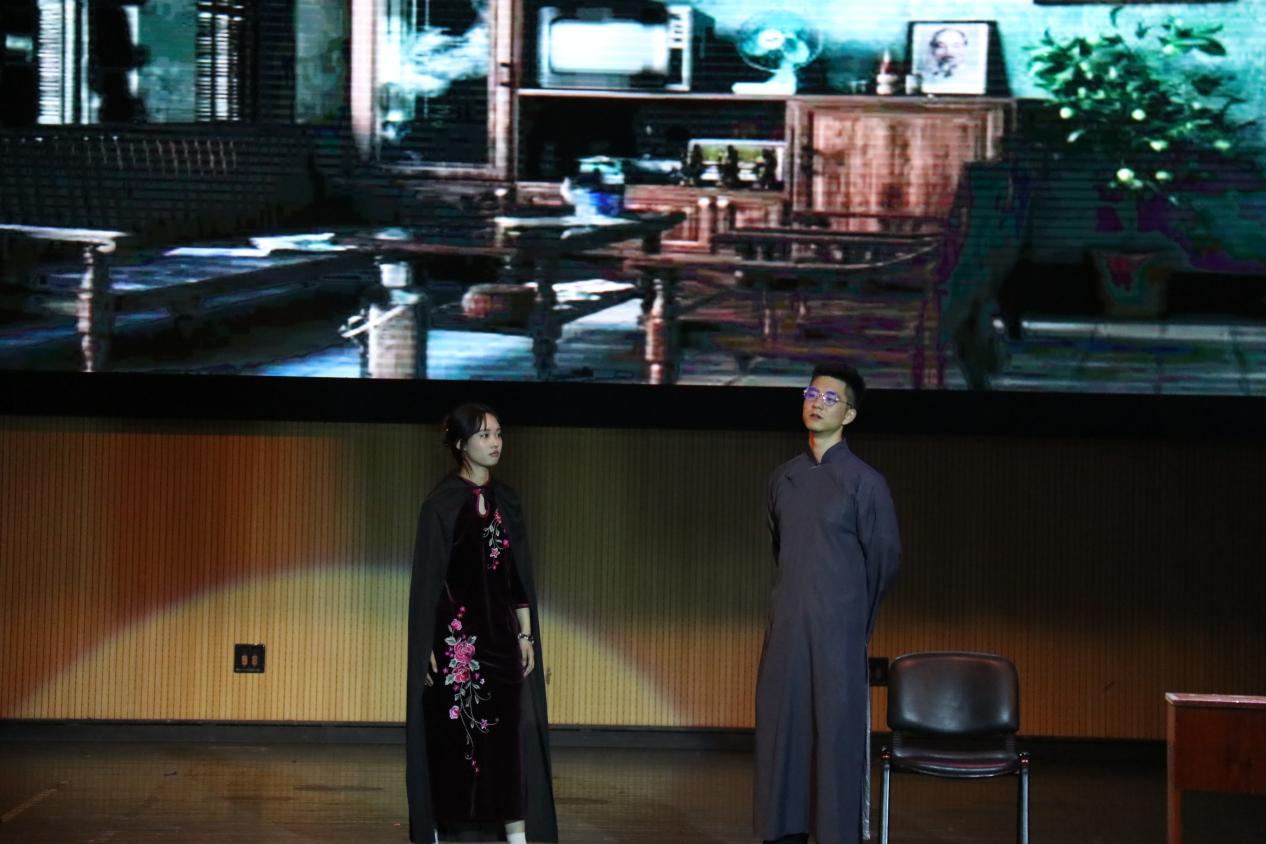 晚会由我校扬音音乐社带来的歌曲《我爱你中国》与《想去海边》作为开场节目,歌曲一经演唱,便将全场气氛活跃起来。