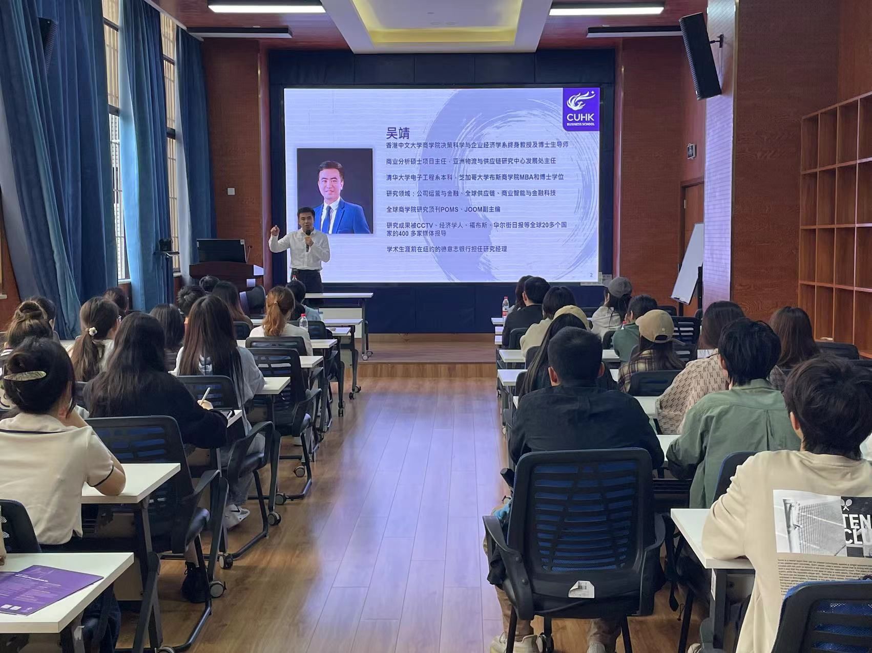 之间存在一定的自主性,发展也较快,并取得多项荣誉,同学们通过展示视频感受到了香港中文大学的校园魅力。吴靖教授从案例出发,通过当今热门的人工智能、校友发展情况等实际事例,向同学们展示商业分析数据模型的厉害之处。同时,他也强调理商融合的理念,引出此次宣讲的商业分析硕士项目。全日制硕士学习路线有多个培养项目,如BA、MAcc、MiM等,在三学期制的学制下,项目通过课程学习、教学实践等方式来培养人才,同时吴靖教授也提出希望进入项目学习的同学能够充分发挥主观能动性,不断深化学习。
