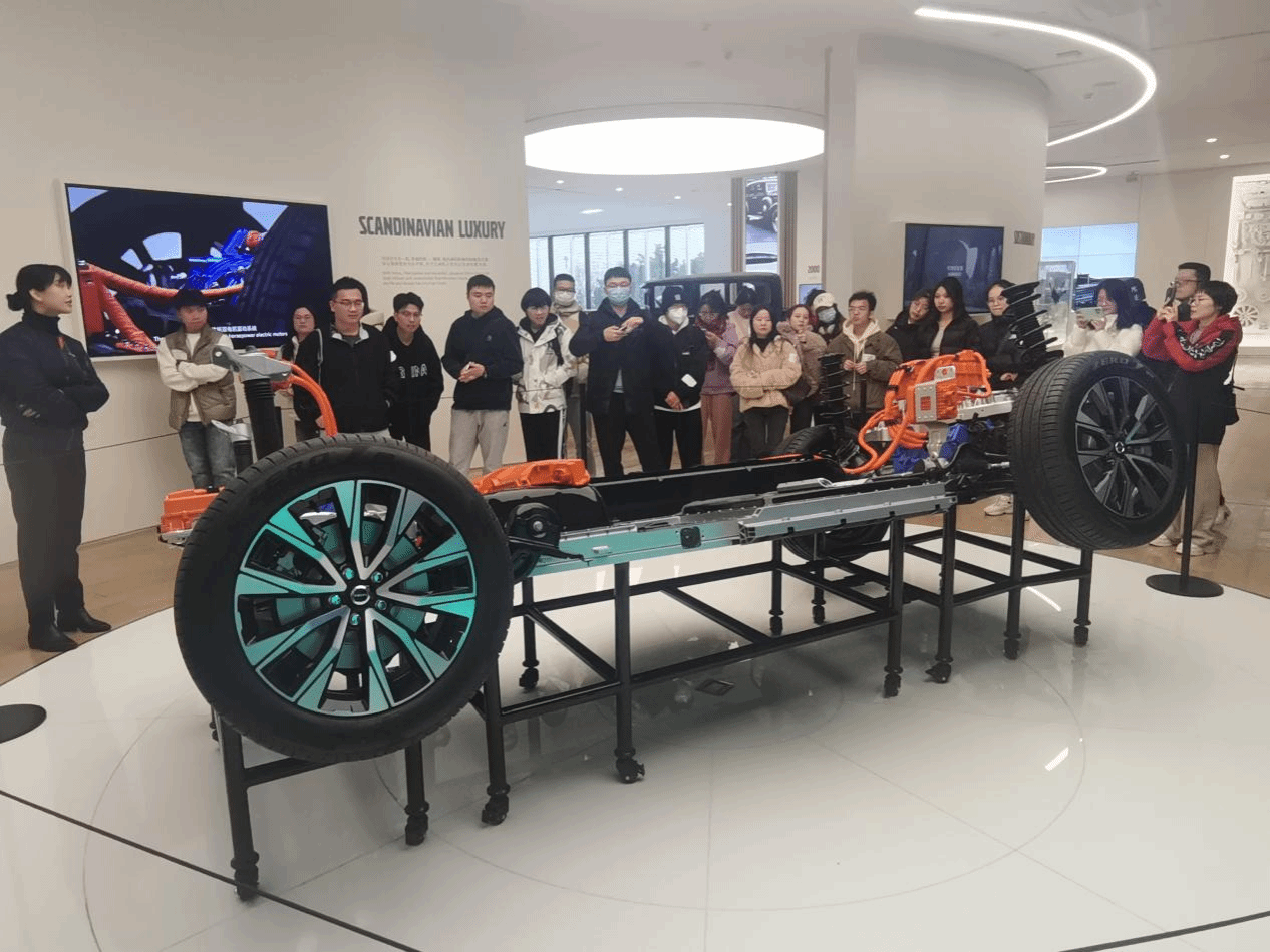 随后,同学们踏上了沃尔沃成都工厂的生产线,目睹了汽车从零部件组装到成品的全过程。这一瞬间,同学们仿佛置身于汽车制造业的心脏,感受到了先进制造技术的魅力。在生产线上,工人们有序地进行着各个环节的工作,同学们被引领着穿越机器的轰鸣声和流水线的灯光交织中,领略到了汽车产业背后的精妙、高效以及标准化的流程。