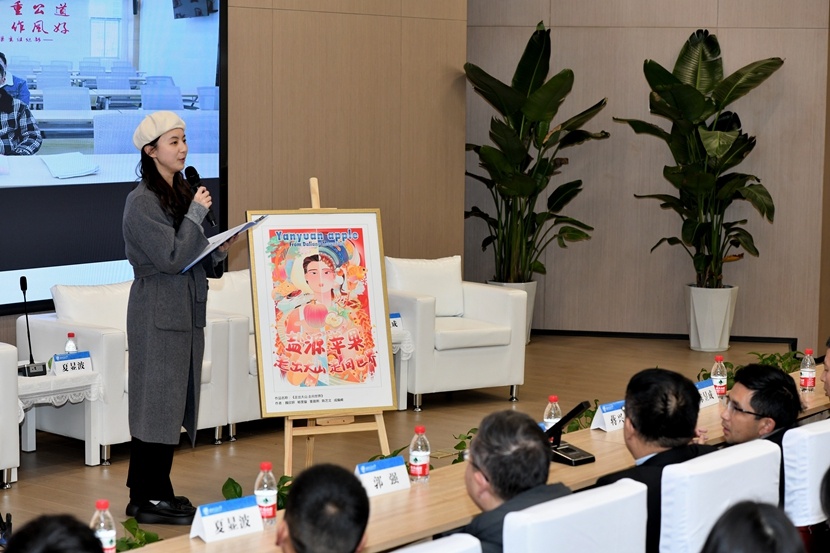 该校国内合作与教育培训管理处副处长阮波代表主办方会见了各方代表和全体创作者,并观摩了作品展示。展示作品的过程中,创作者们向来宾分享了自己的创作灵感和作品意义。其中魏欣妍同学及团队作品《走出大山,走向世界》将高铁元素与盐源的民族风情巧妙交融,体现了西南交通大学在乡村振兴中的责任感和使命感,以及交大学子对盐源苹果走向世界的美好愿景。