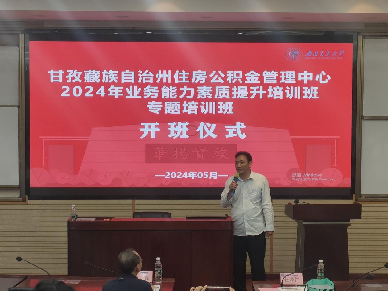 承办的甘孜藏族自治州住房公积金管理中心2024年业务能力素质提升班开班仪式在九里校区0号楼0204报告厅顺利举行。甘孜藏族自治州住房公积金管理中心党组成员、理塘管理部主任伍泽仁,易游体育-易游体育官方网站-YY SPORTS
